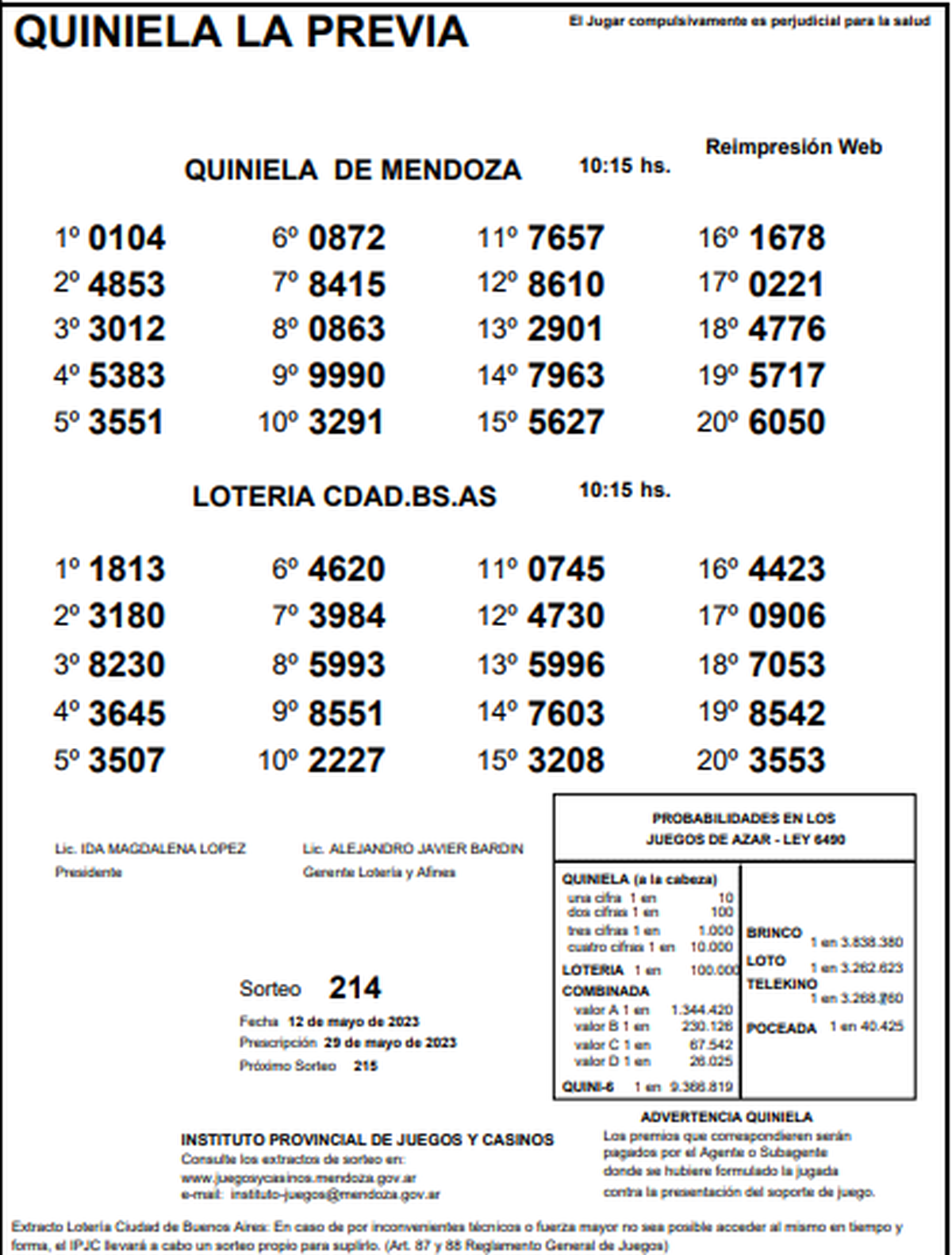 Quiniela de Mendoza: resultados de la Previa de hoy, 12 de mayo de 2023