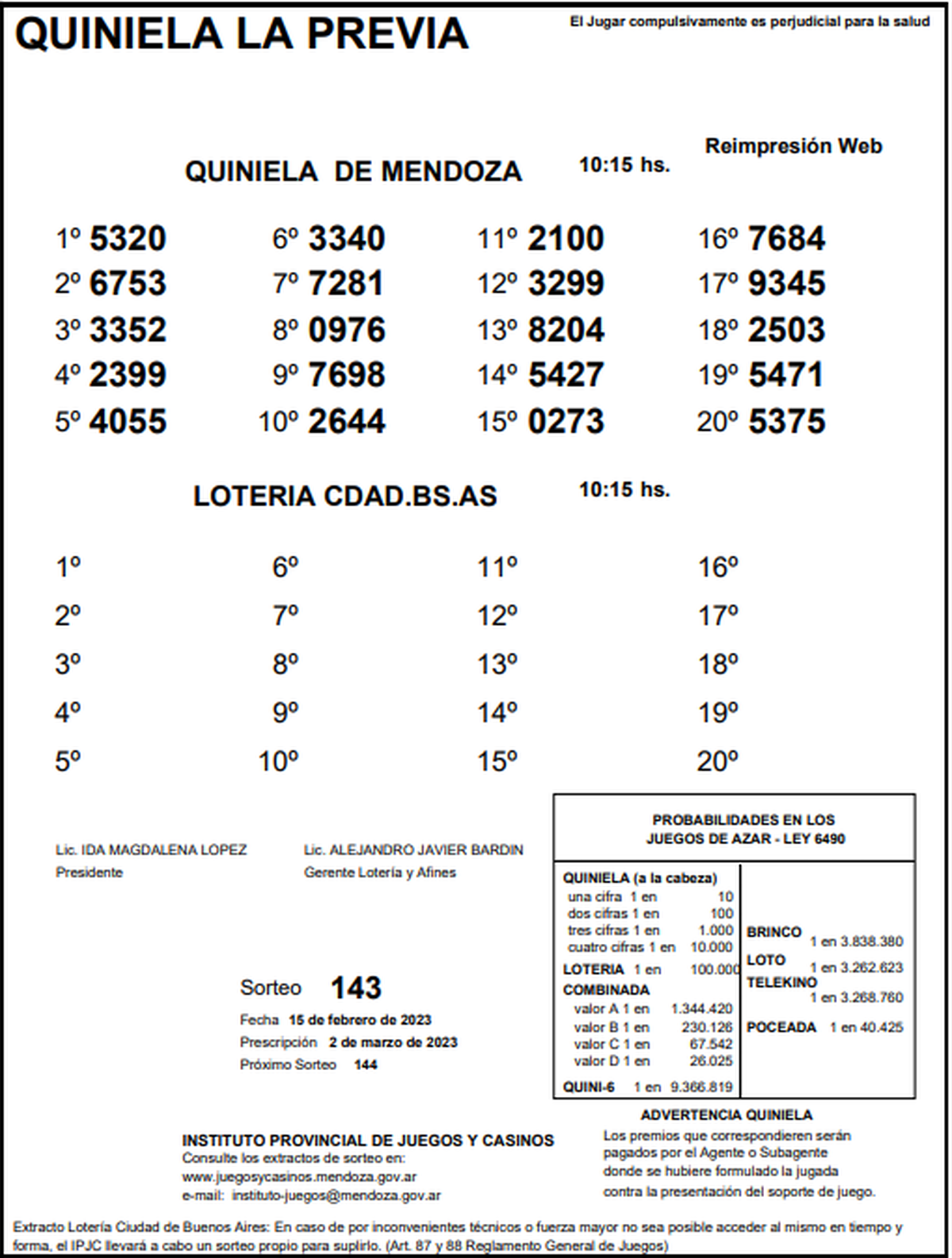 Quiniela de Mendoza: resultados de la Previa de hoy, 15 de febrero de 2023