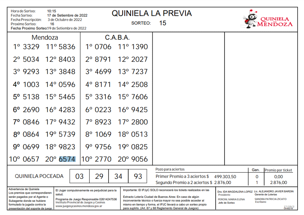 ►TE PUEDE INTERESAR: Resultados de la Quiniela de Mendoza: Nocturna del 16 de septiembre