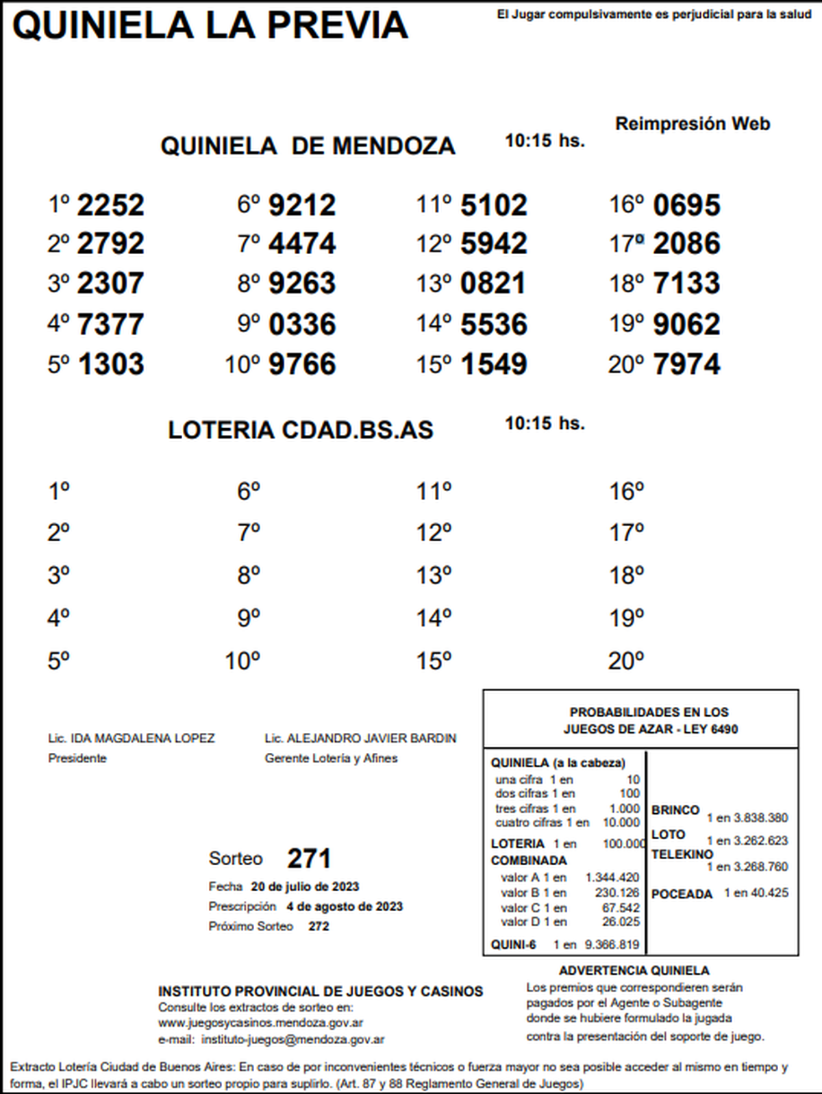 Quiniela de Mendoza: resultados de La Previa de hoy, 20 de julio de 2023