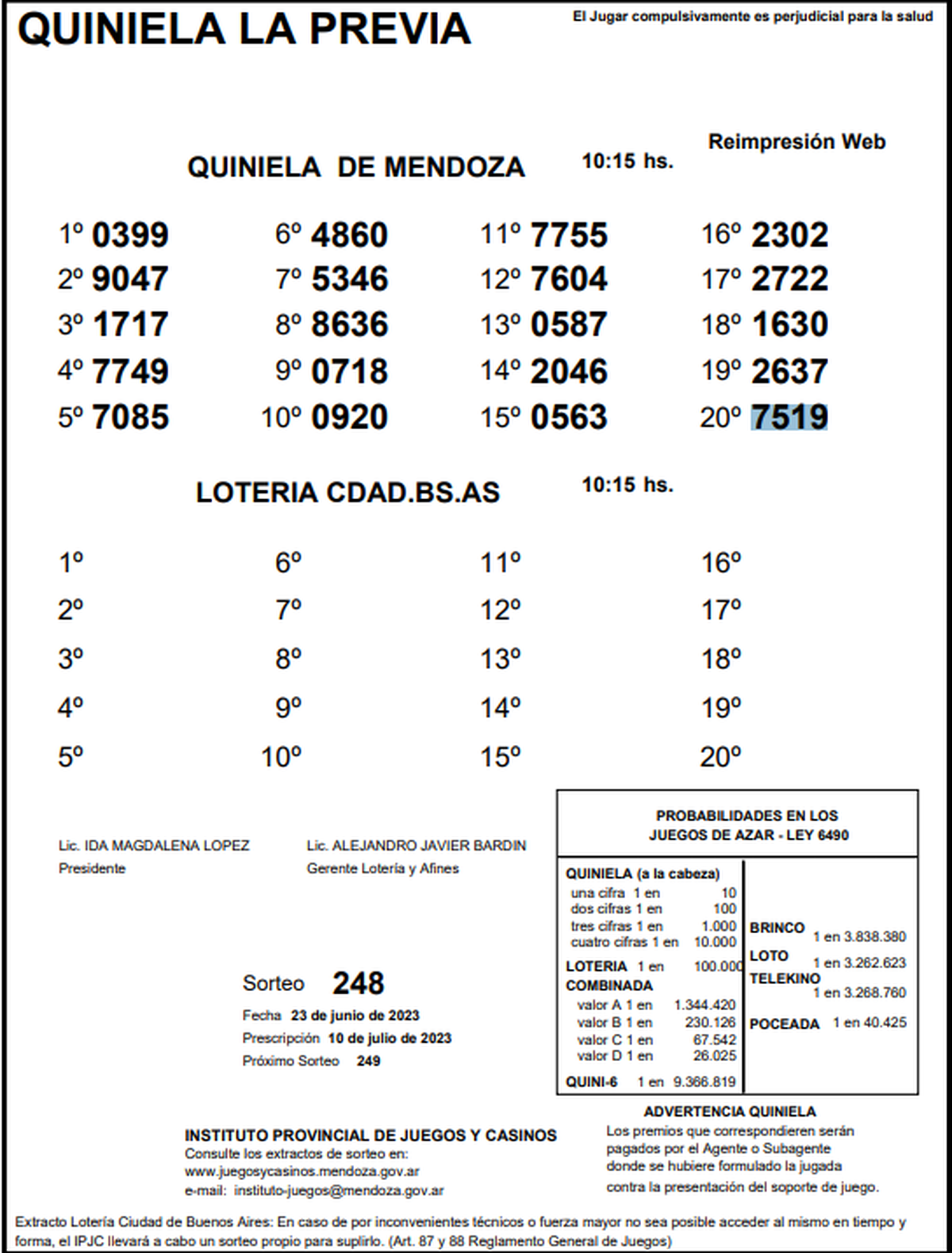 Quiniela de Mendoza: resultados de La Previa de hoy, 23 de junio de 2023
