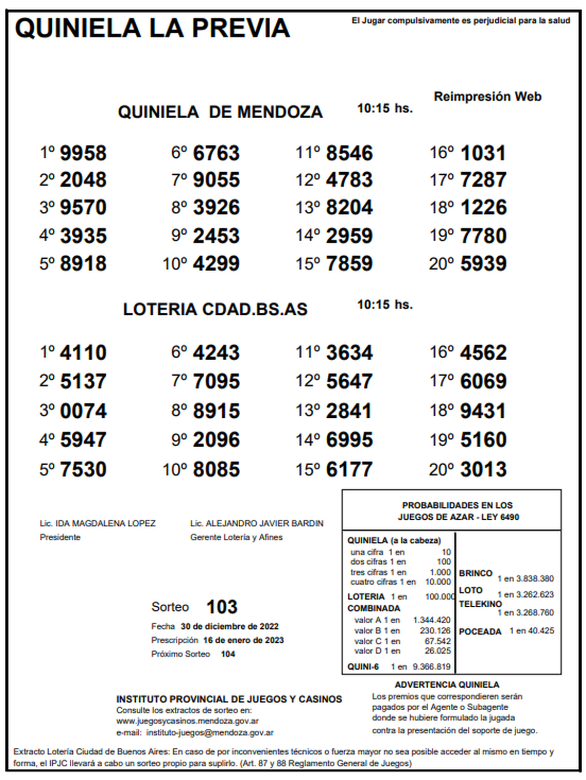 Resultados Quiniela de Mendoza. La Previa.