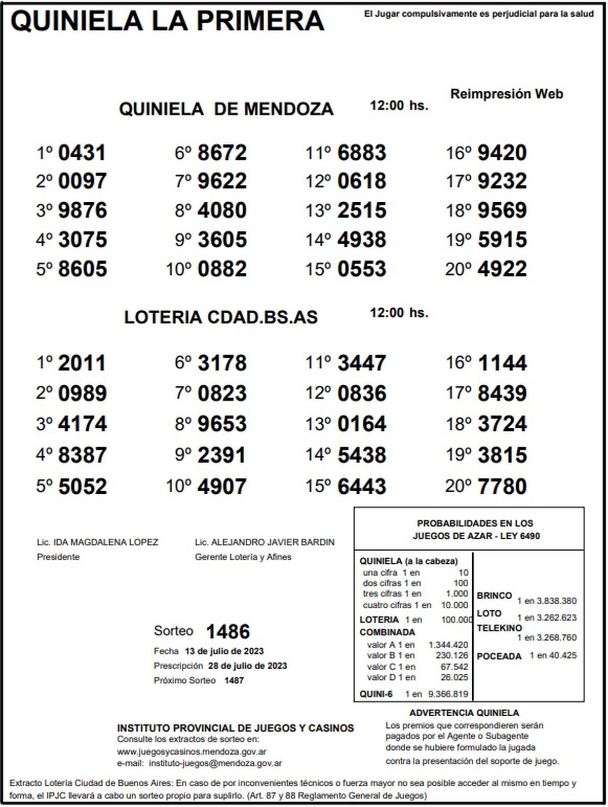 Quiniela de Mendoza: resultados de la Primera de hoy, 13 de julio de 2023