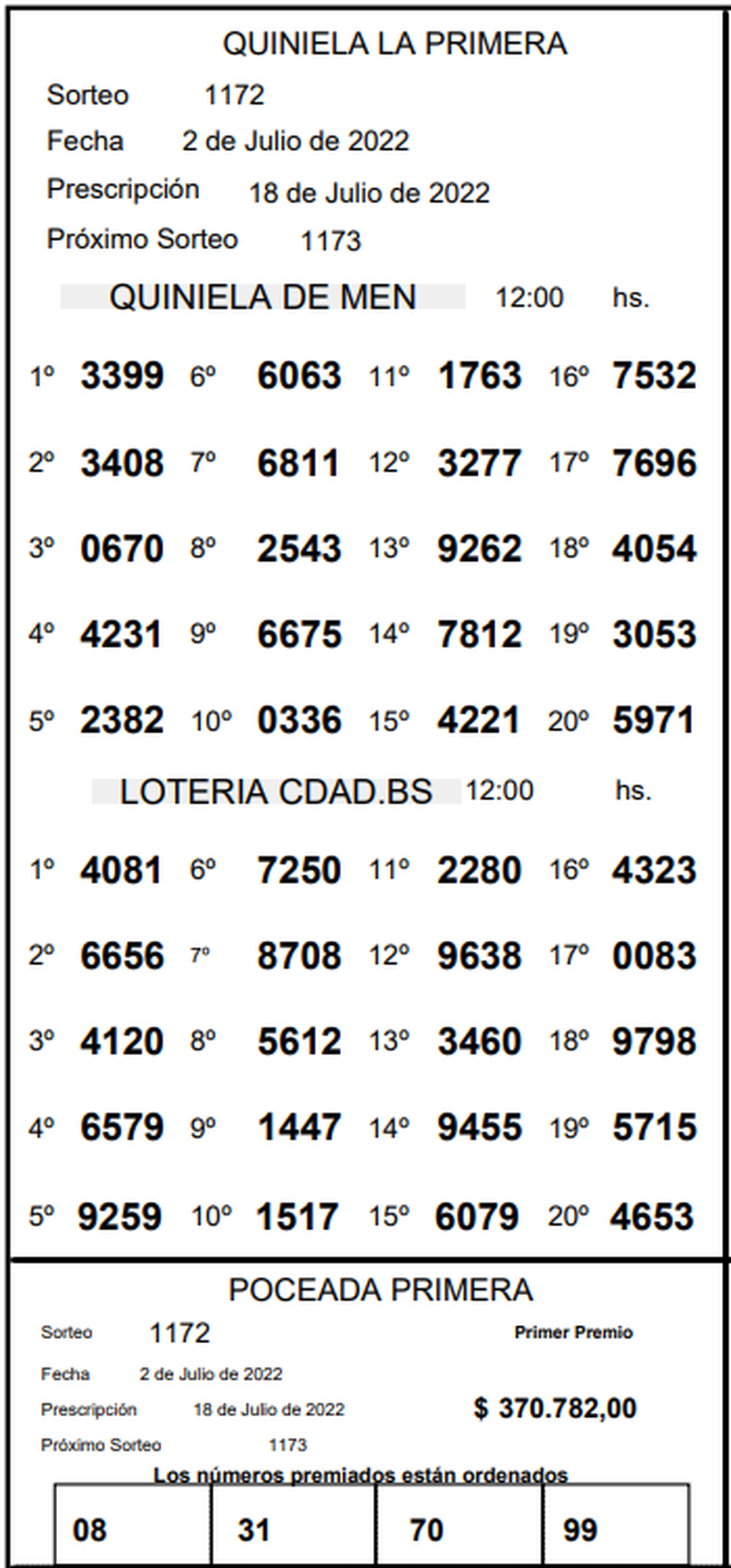 Quiniela de Mendoza: resultados de la Primera de hoy, 2 de julio de 2022