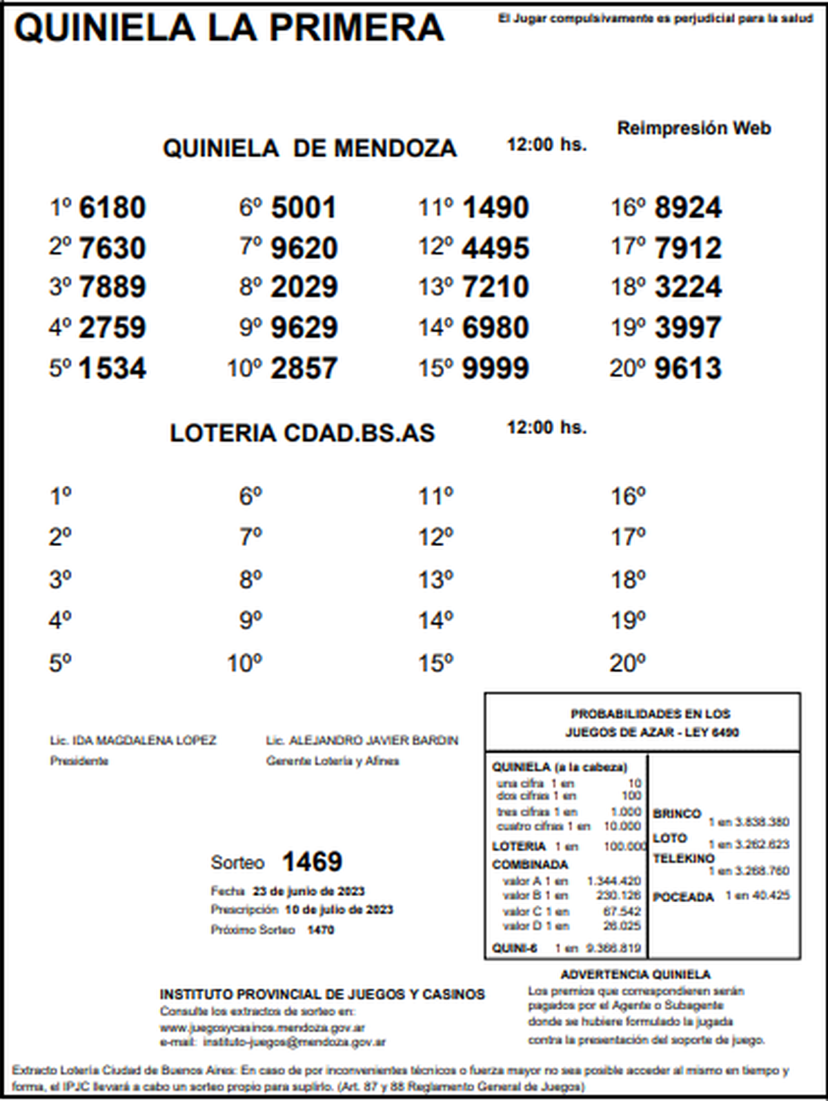 Quiniela de Mendoza: resultados de la Primera de hoy, 23 de junio