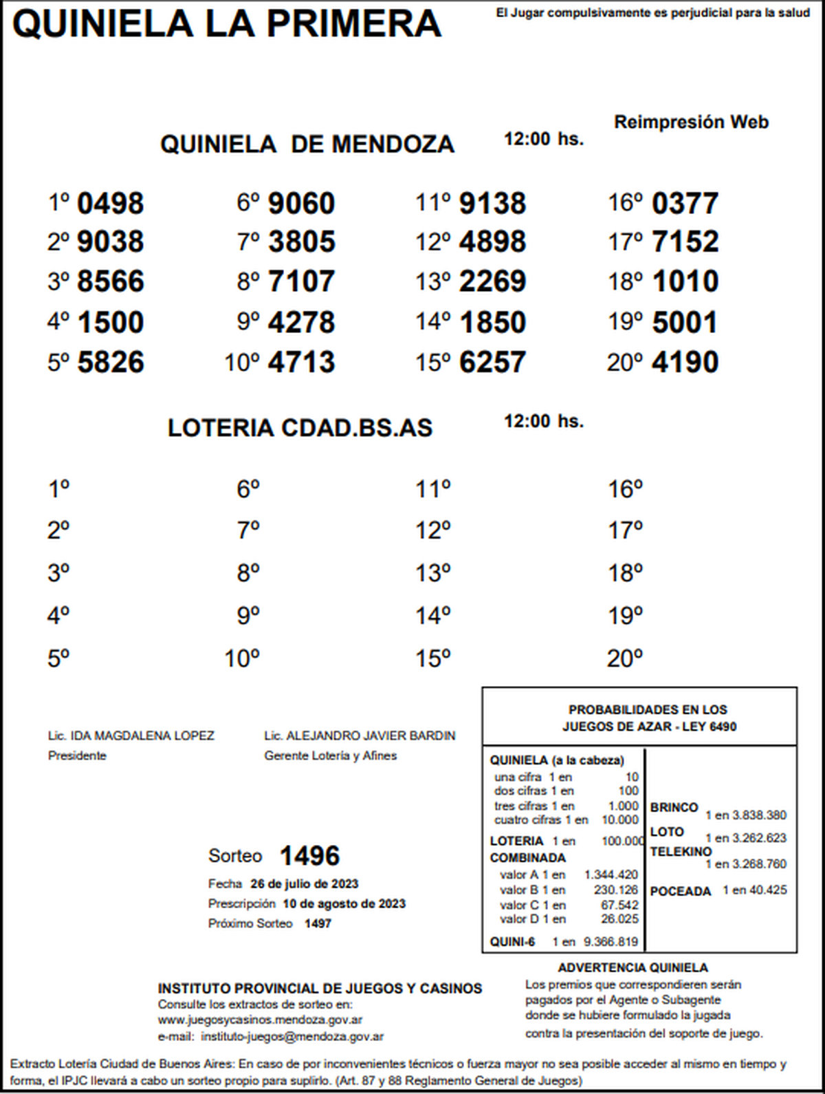 ►TE PUEDE INTERESAR: Resultados de la Quiniela de Mendoza: La Previa 26 de julio