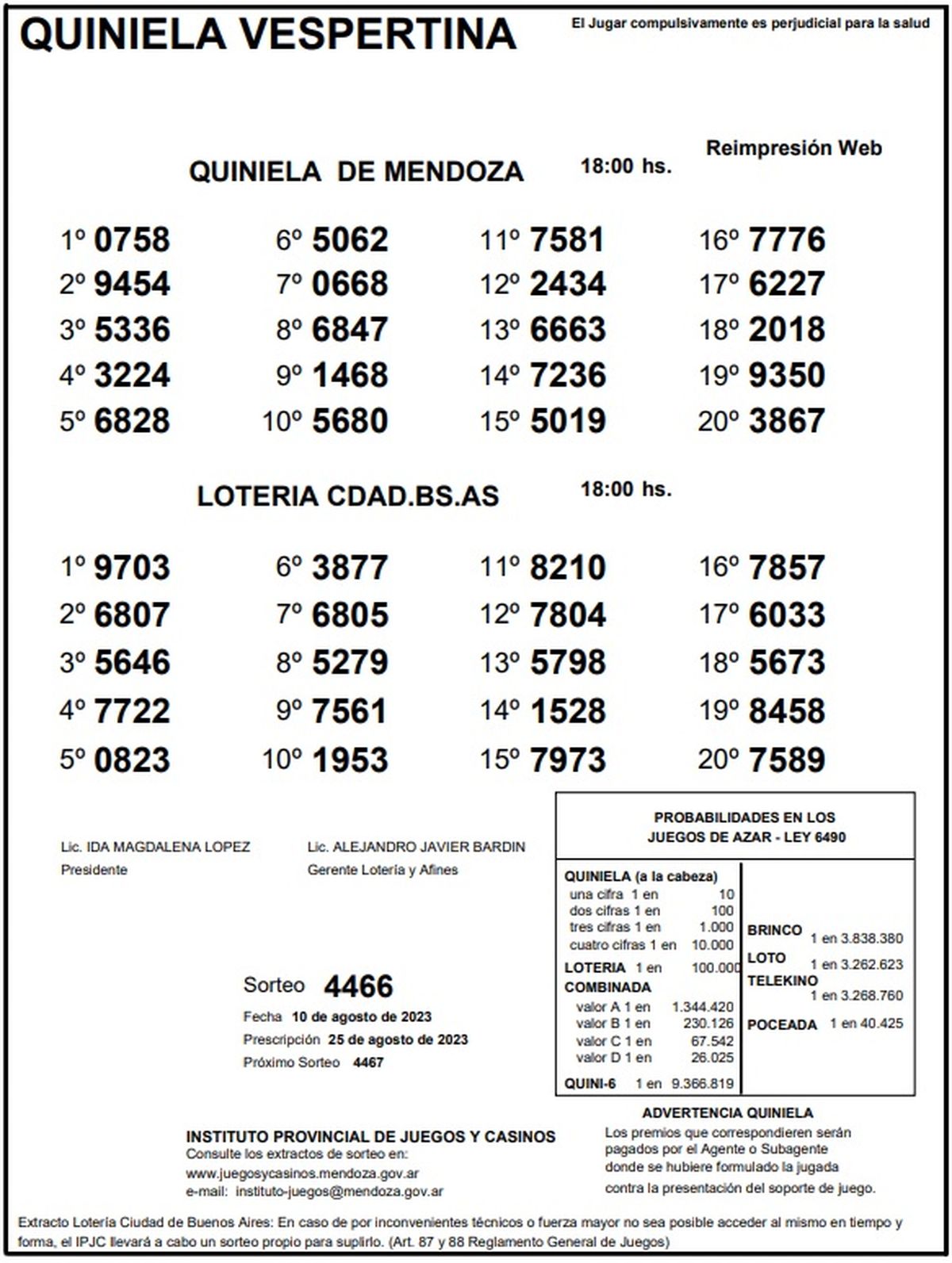Quiniela de Mendoza: resultados de la Vespertina de hoy, 10 de agosto de 2023