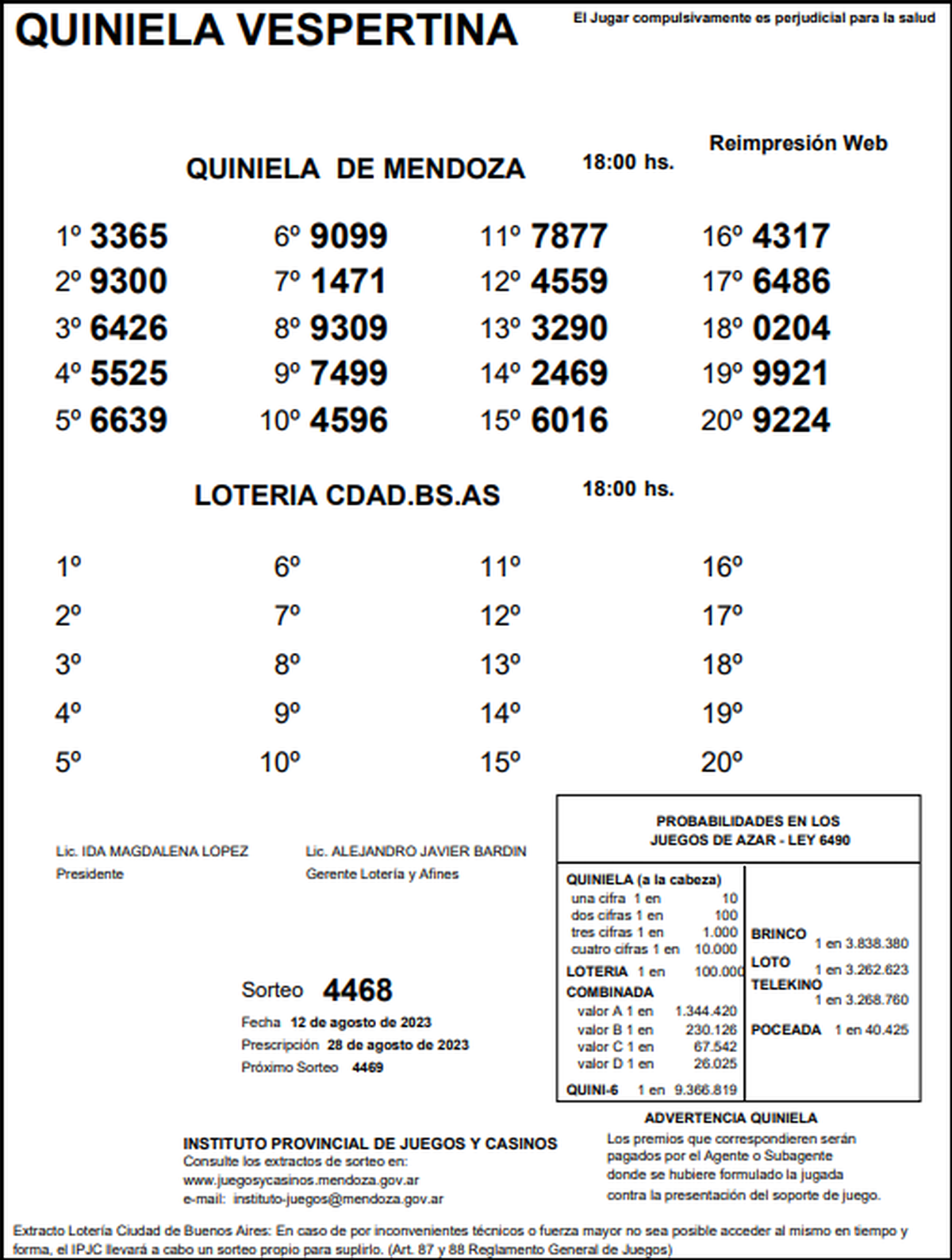Quiniela de Mendoza: resultados de la Vespertina de hoy, 12 de agosto de 2023