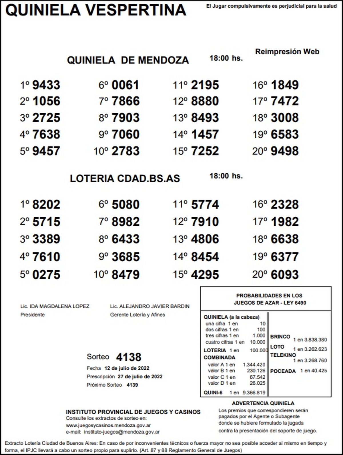 Quiniela de Mendoza: resultados de la Vespertina de hoy, 12 de julio de 2022