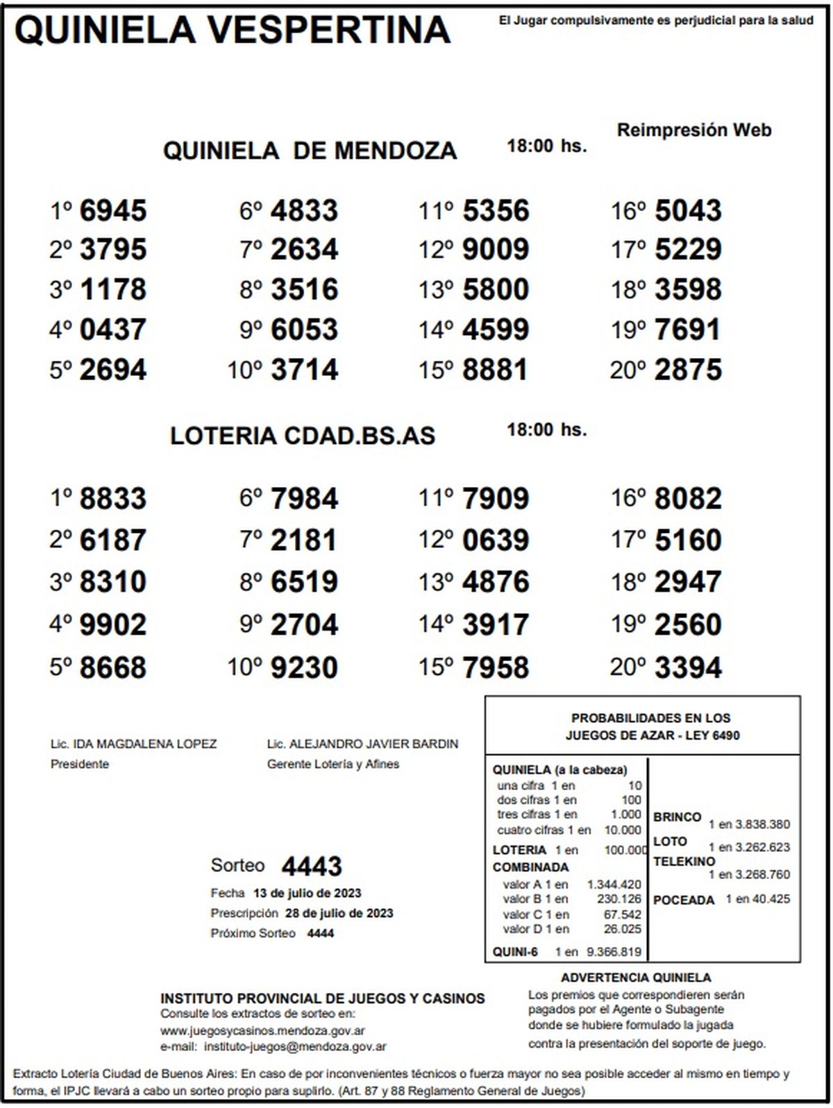 Quiniela de Mendoza: resultados de la Vespertina de hoy, 13 de julio de 2023