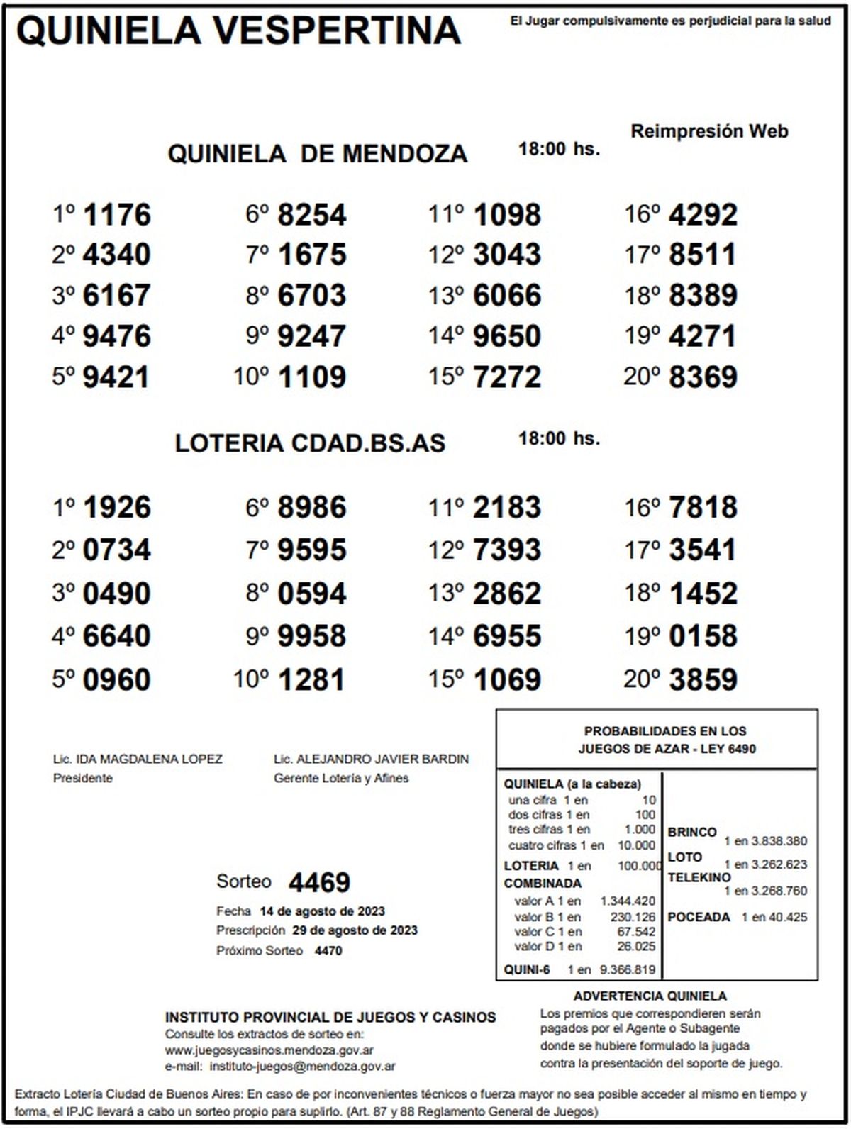 Quiniela de Mendoza: resultados de la Vespertina de hoy, 14 de agosto de 2023
