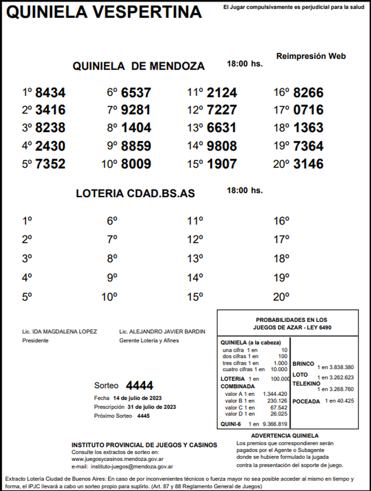 Quiniela de Mendoza: resultados de la Vespertina de hoy, 14 de julio de 2023