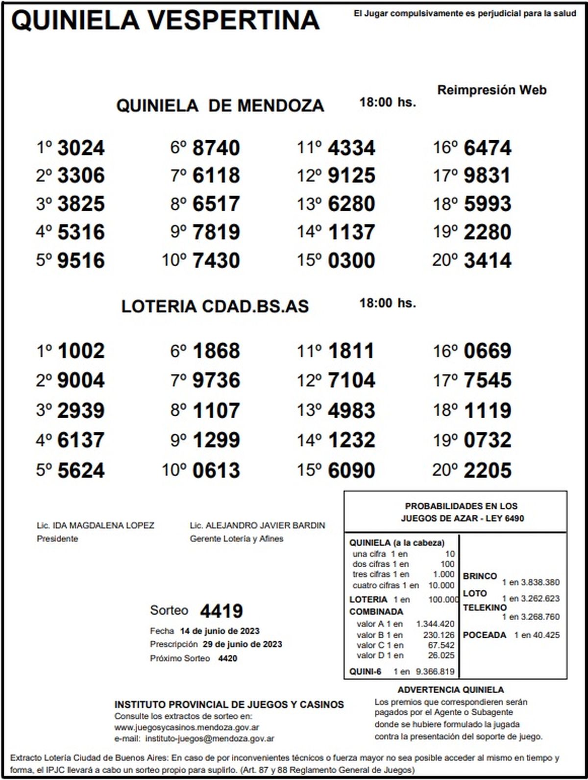 Quiniela de Mendoza: resultados de la Vespertina de hoy, 14 de junio de 2023