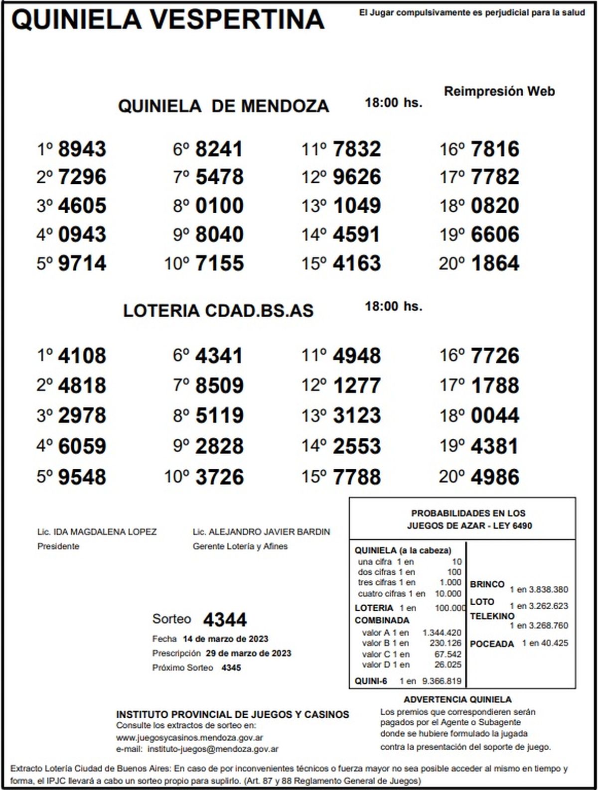 Quiniela de Mendoza: resultados de la Vespertina de hoy, 14 de marzo de 2023