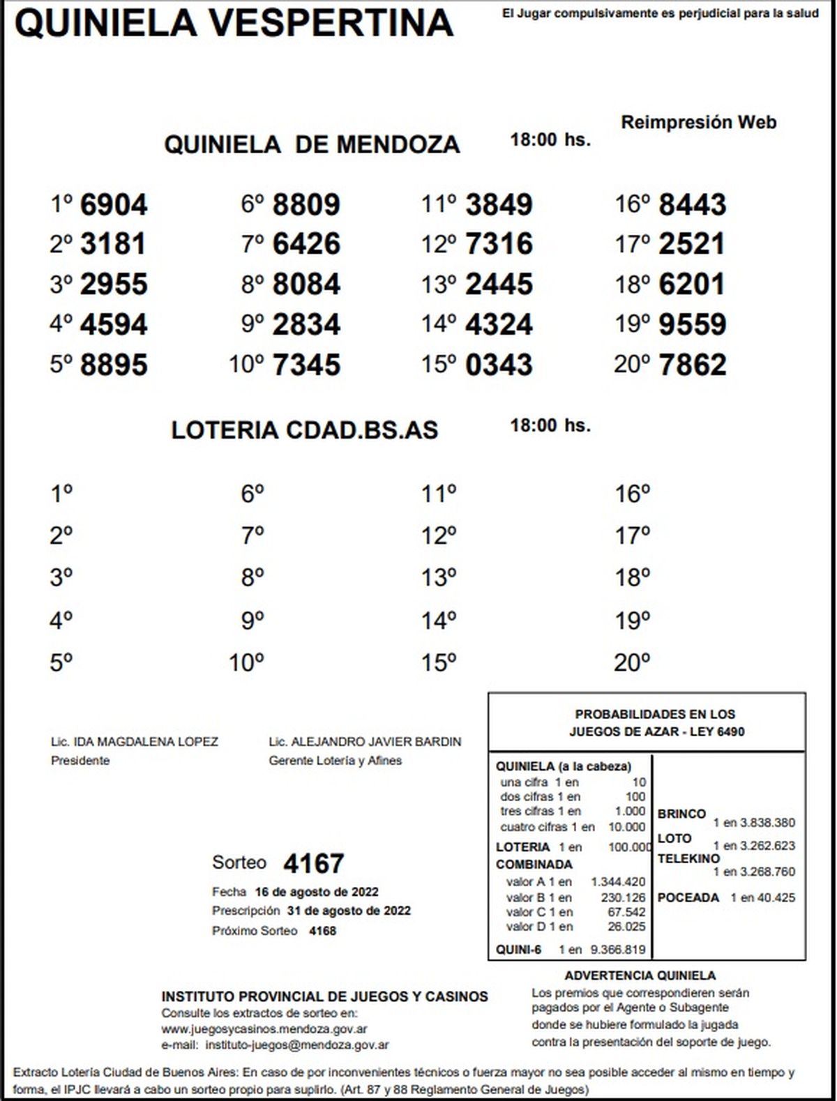 Quiniela de Mendoza: resultados de la Vespertina de hoy, 16 de agosto de 2022