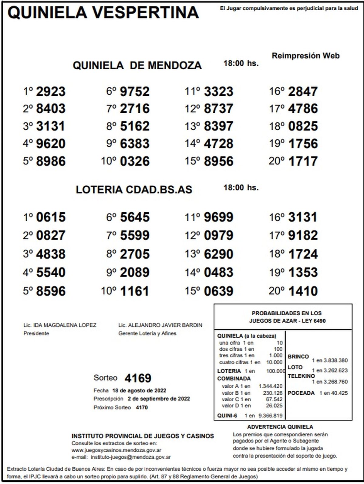 Quiniela de Mendoza: resultados de la Vespertina de hoy, 18 de agosto de 2022