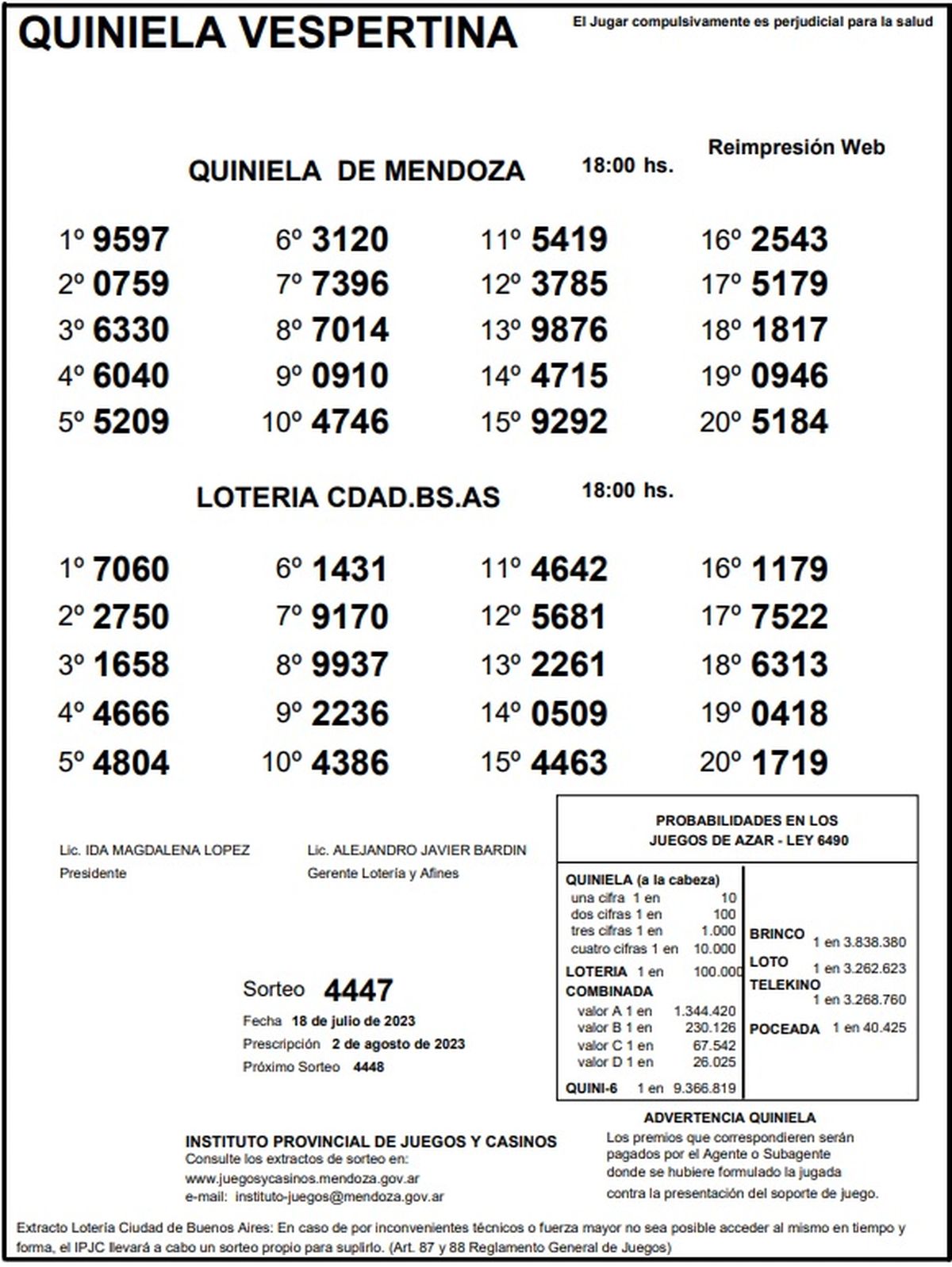 Quiniela de Mendoza: resultados de la Vespertina de hoy, 18 de julio de 2023