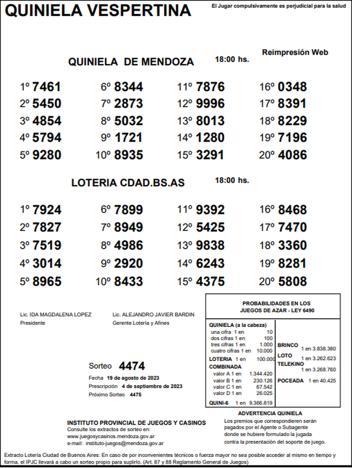Quiniela de Mendoza: resultados de la Vespertina de hoy, 19 de agosto