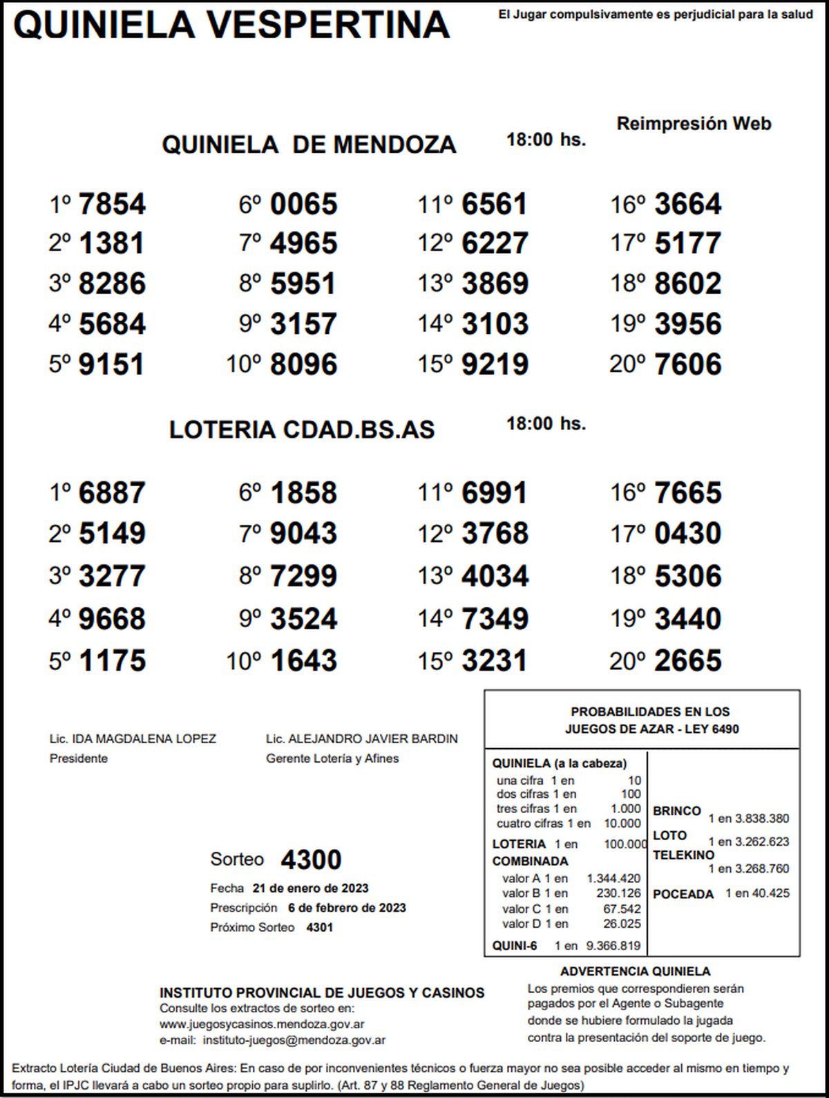 Quiniela de Mendoza: resultados de la Vespertina de hoy, 21 de enero de 2023