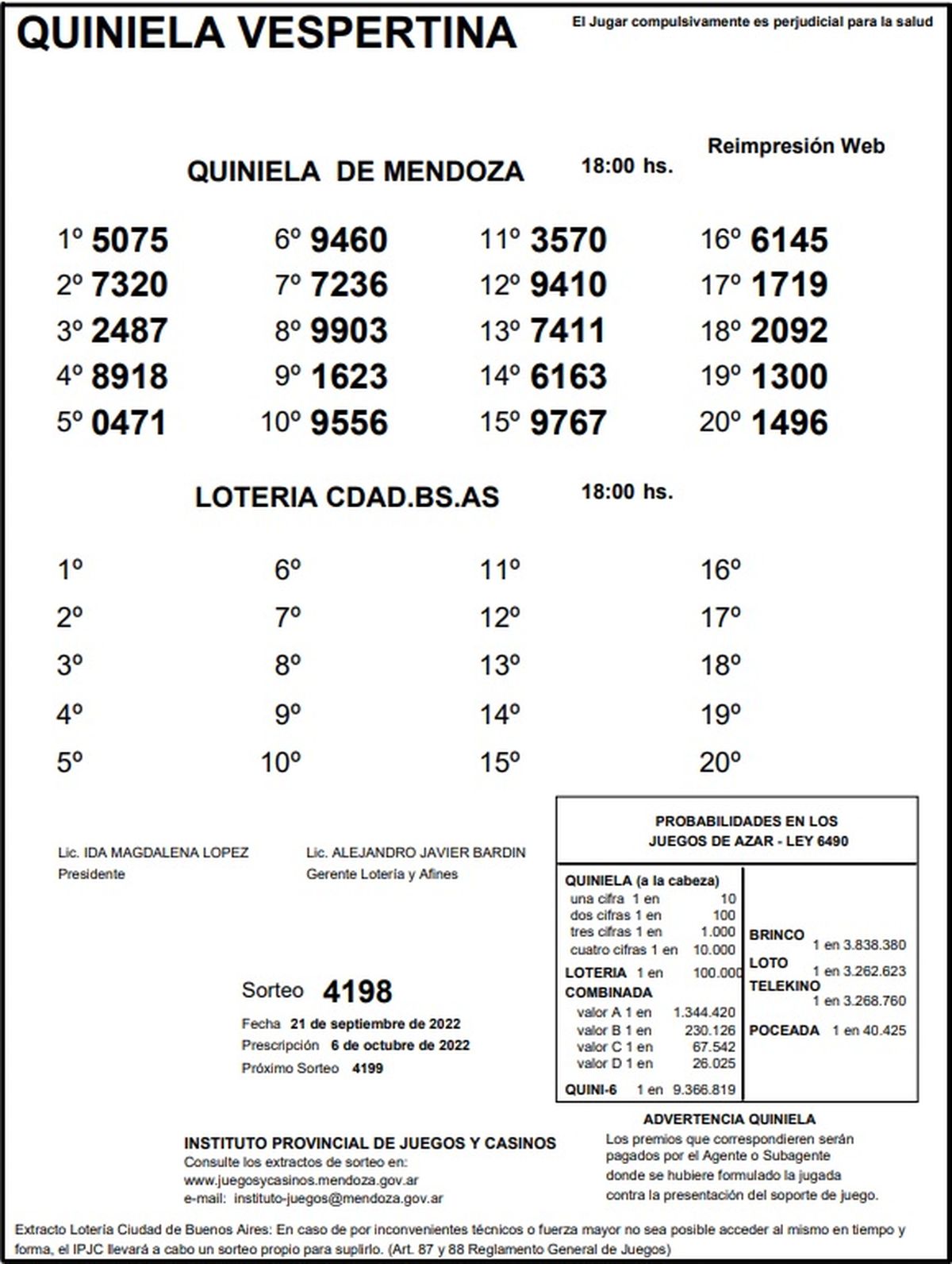 Quiniela de Mendoza: resultados de la Vespertina de hoy, 21 de septiembre de 2022