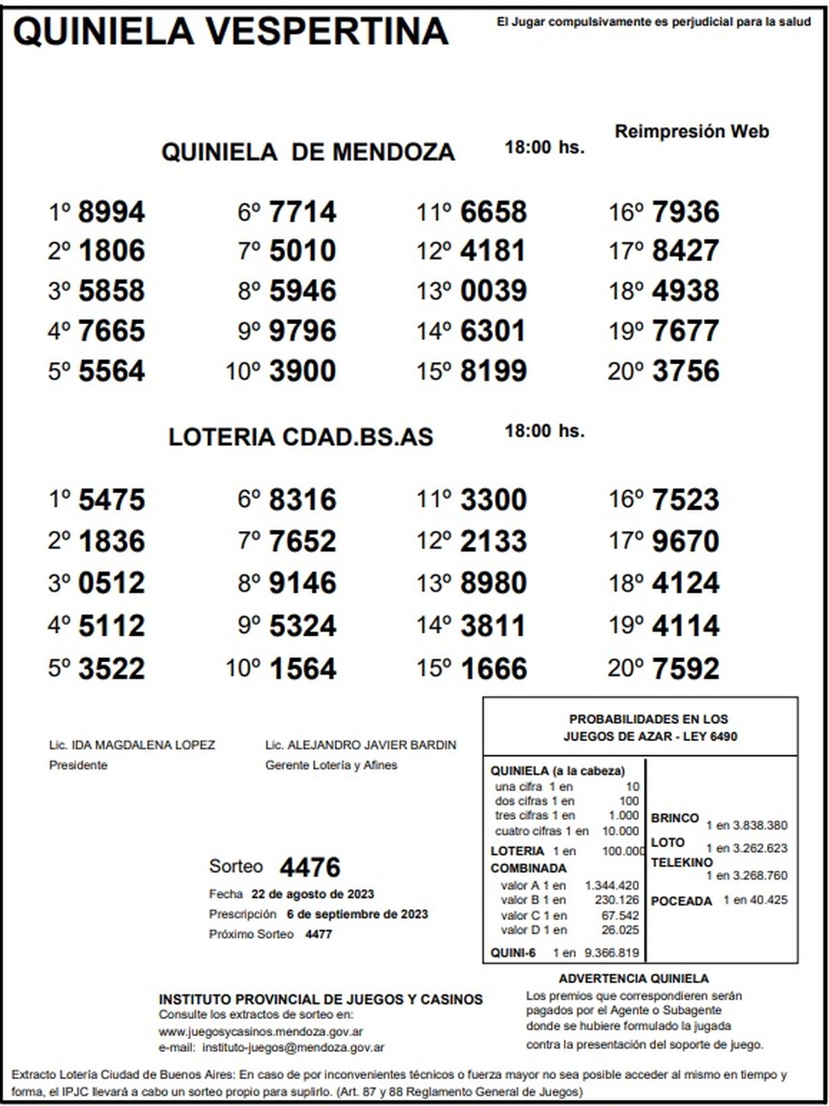 Quiniela de Mendoza: resultados de la Vespertina de hoy, 22 de agosto de 2023