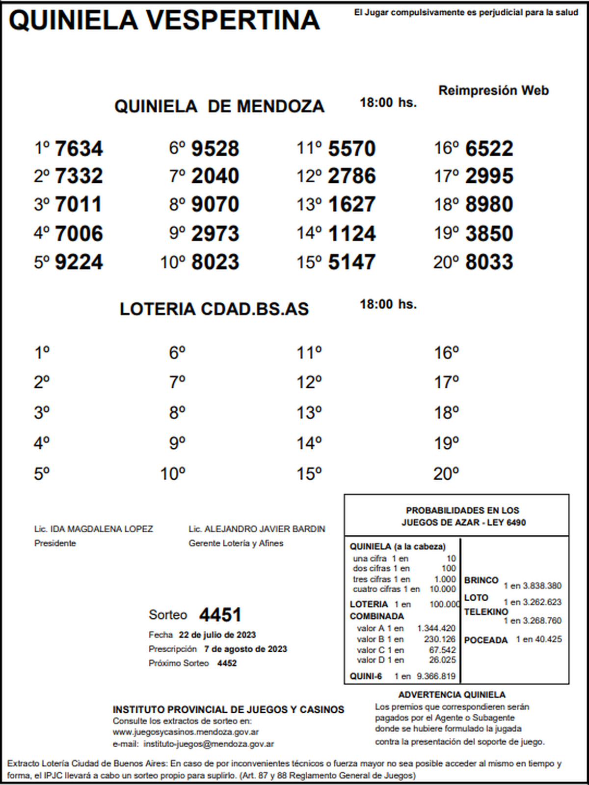 Quiniela de Mendoza: resultados de la Vespertina de hoy, 22 de julio