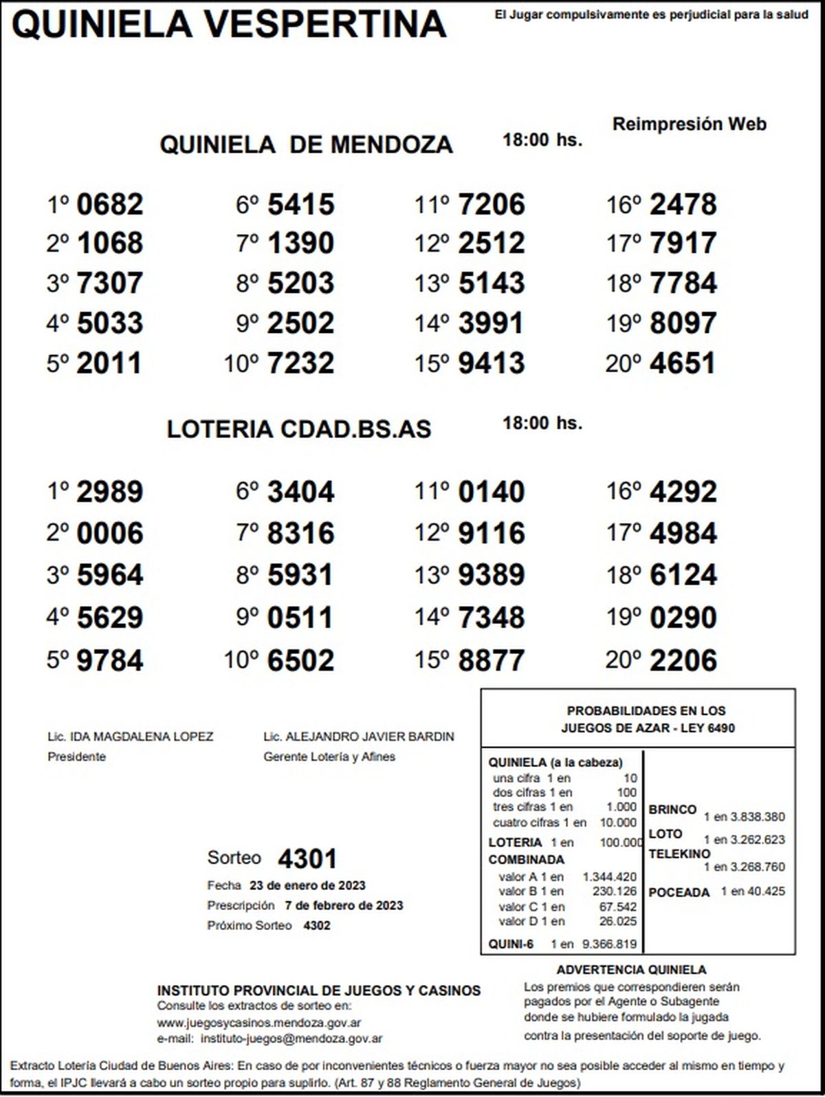 Quiniela de Mendoza: resultados de la Vespertina de hoy, 23 de enero de 2023