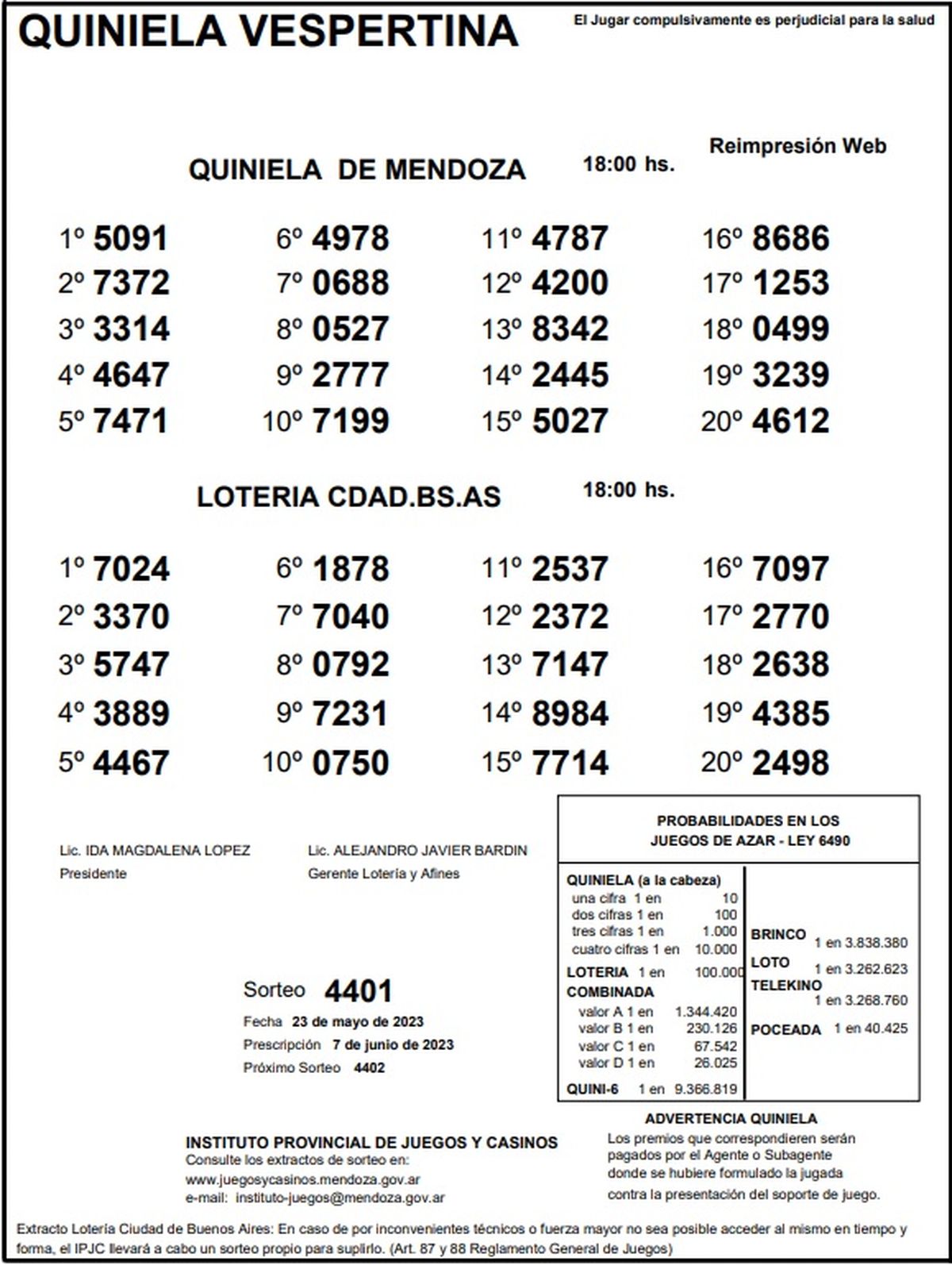 Quiniela de Mendoza: resultados de la Vespertina de hoy, 23 de mayo