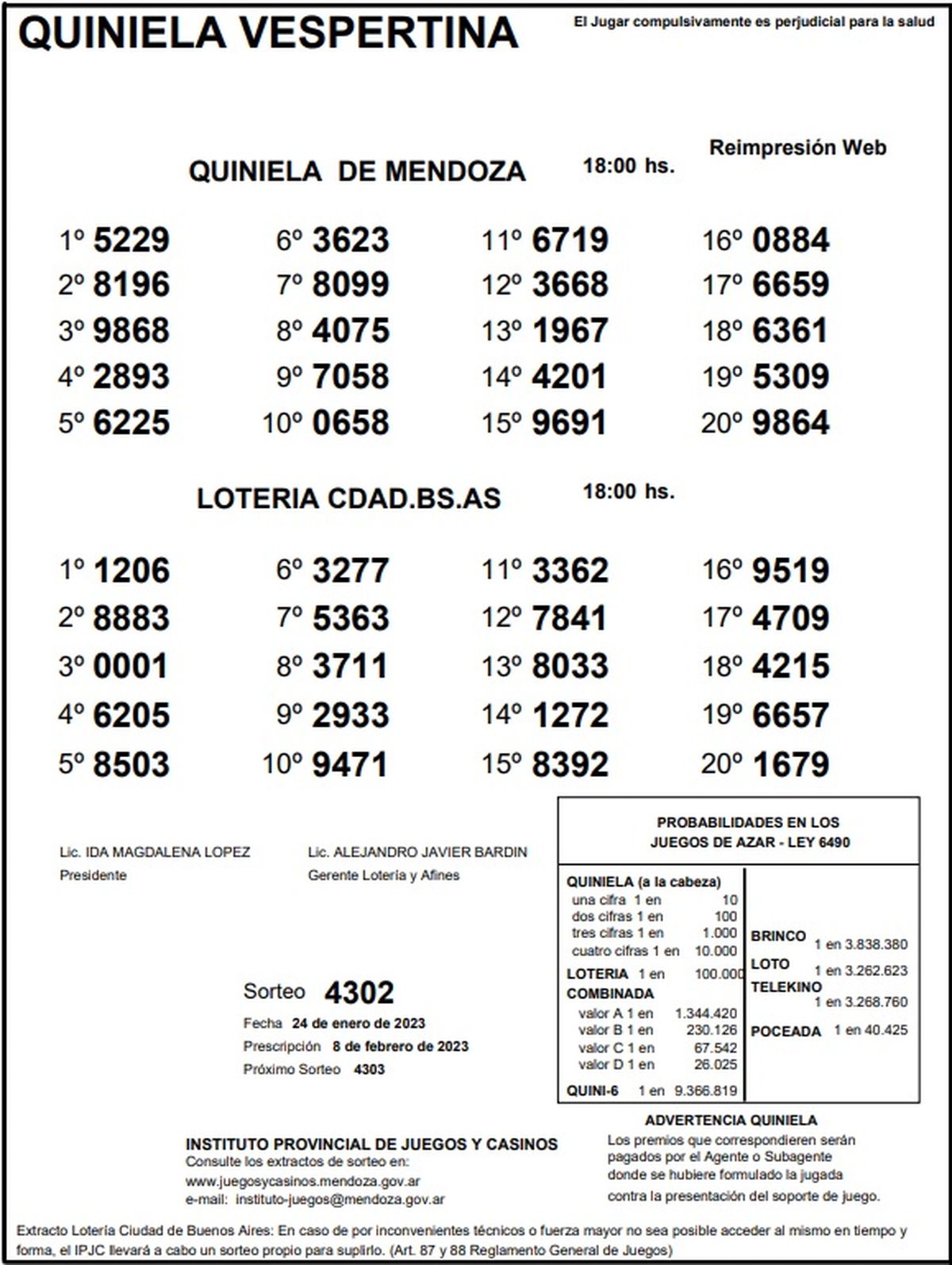 Quiniela de Mendoza: resultados de la Vespertina de hoy, 24 de enero de 2023