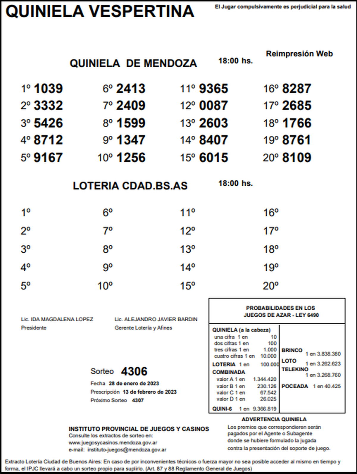 Quiniela de Mendoza: resultados de la Vespertina de hoy, 28 de enero de 2023