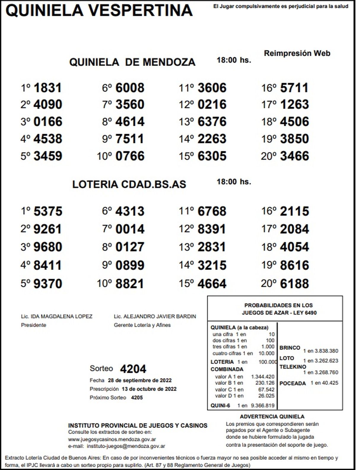 Quiniela de Mendoza: resultados de la Vespertina de hoy, 28 de septiembre de 2022