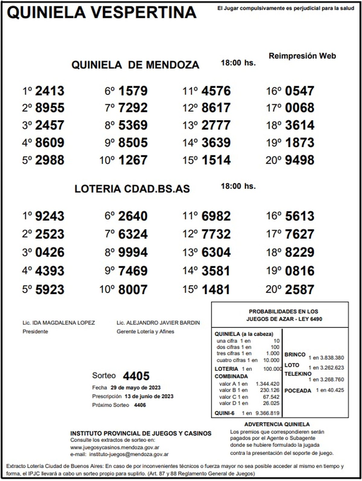 Quiniela de Mendoza: resultados de la Vespertina de hoy, 29 de mayo