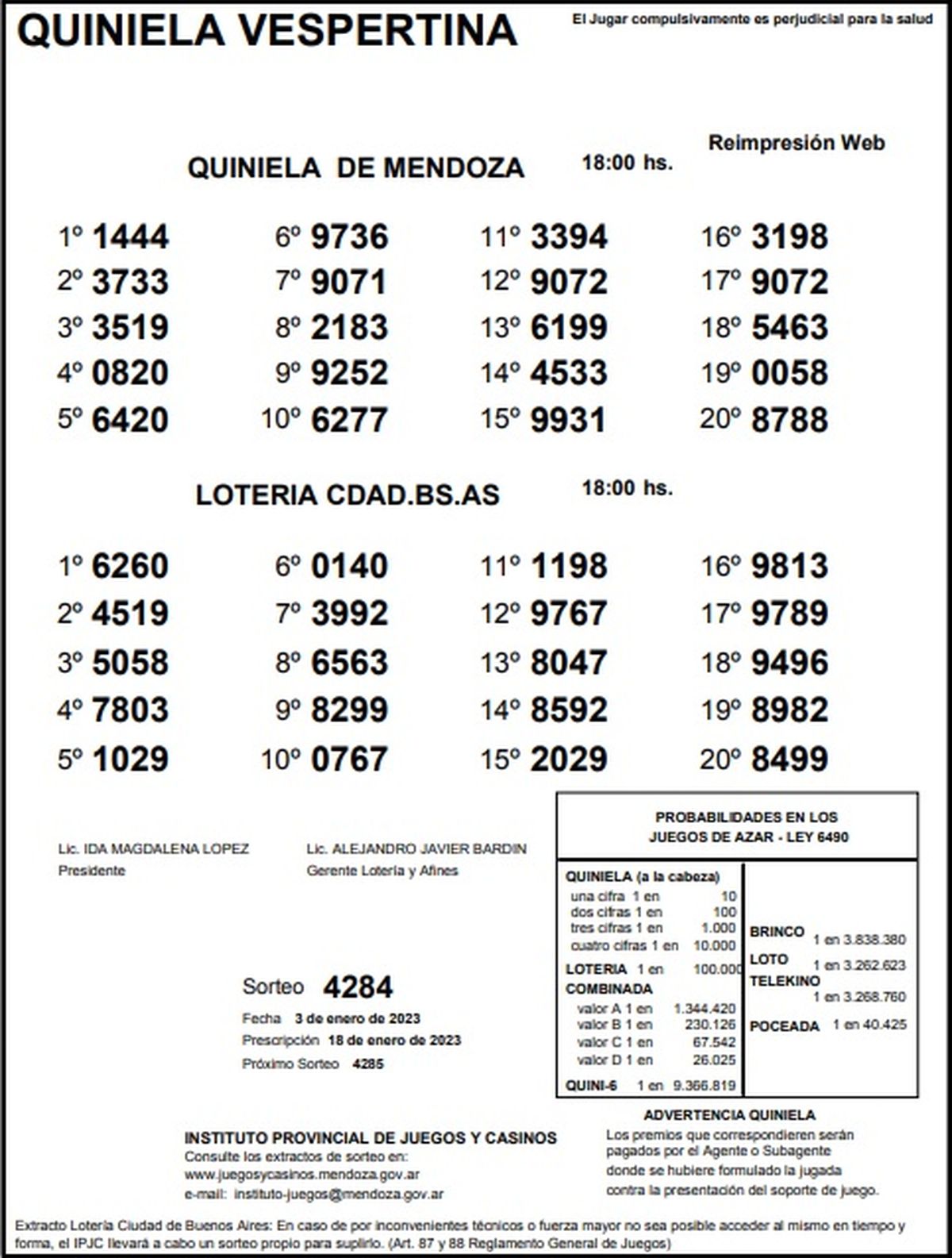 Quiniela de Mendoza: resultados de la Vespertina de hoy, 3 de enero de 2023