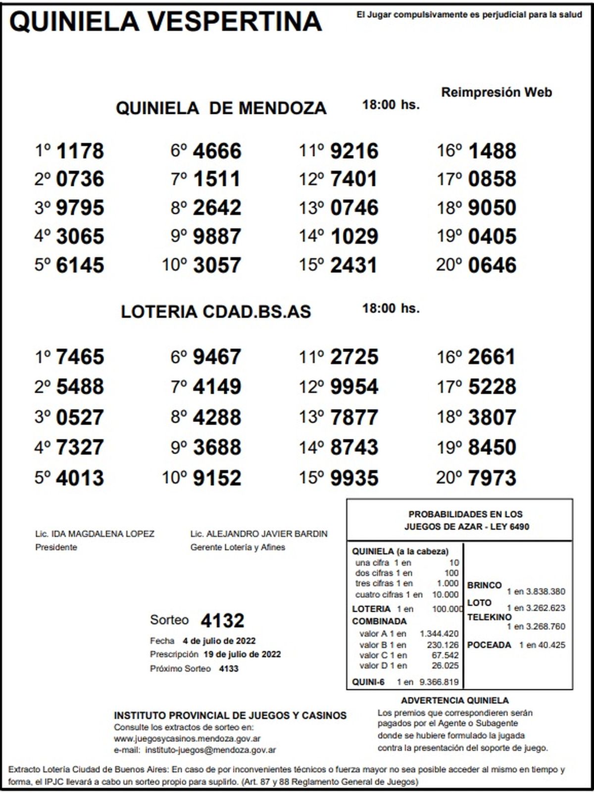 Quiniela de Mendoza: resultados de la Vespertina de hoy, 4 de julio