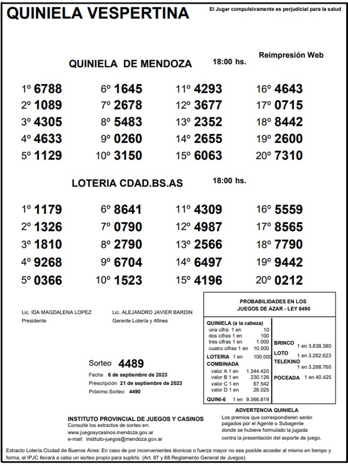 Quiniela de Mendoza: resultados de la Vespertina de hoy, 6 de setiembre de 2023