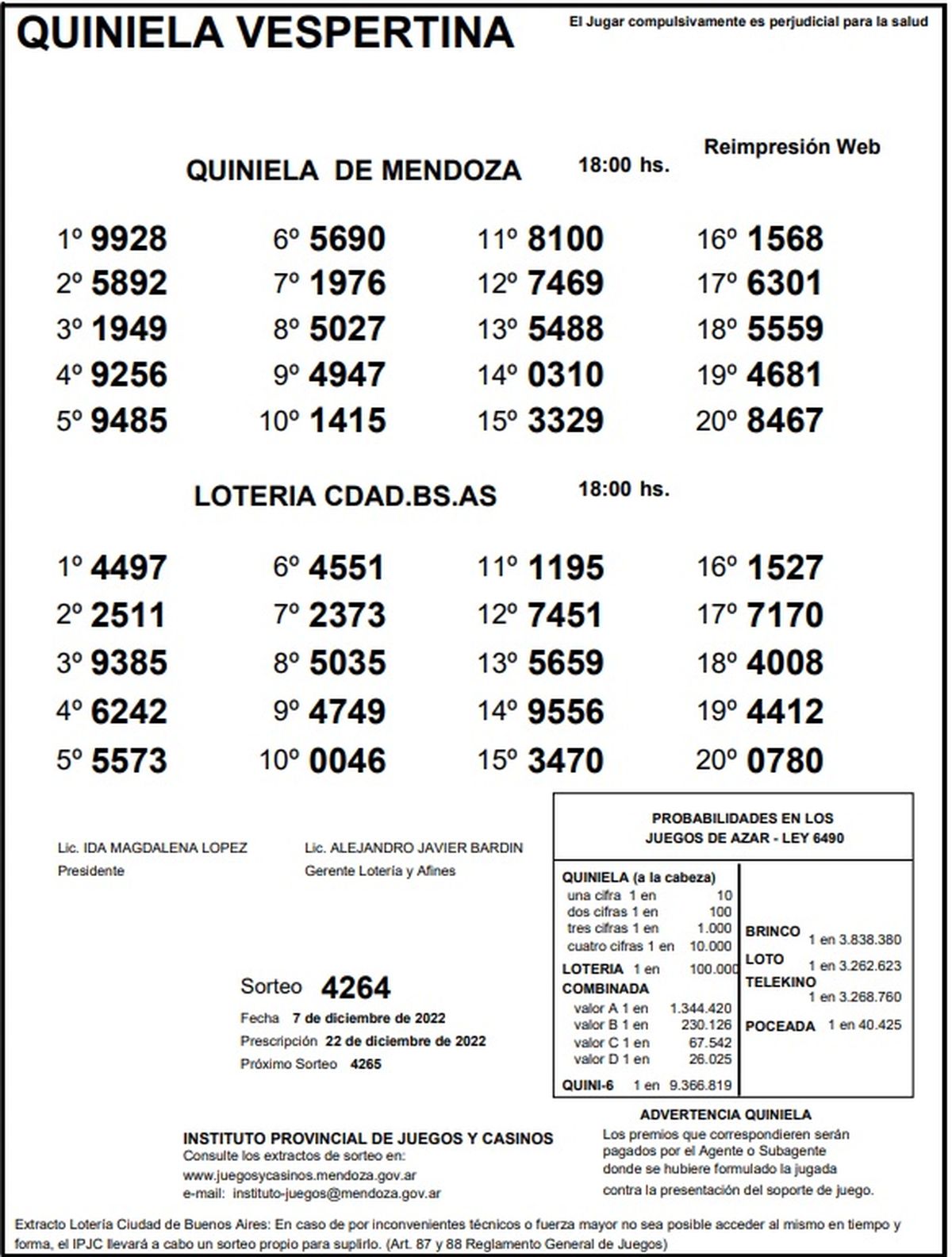 Quiniela de Mendoza: resultados de la Vespertina de hoy, 7 de diciembre de 2022
