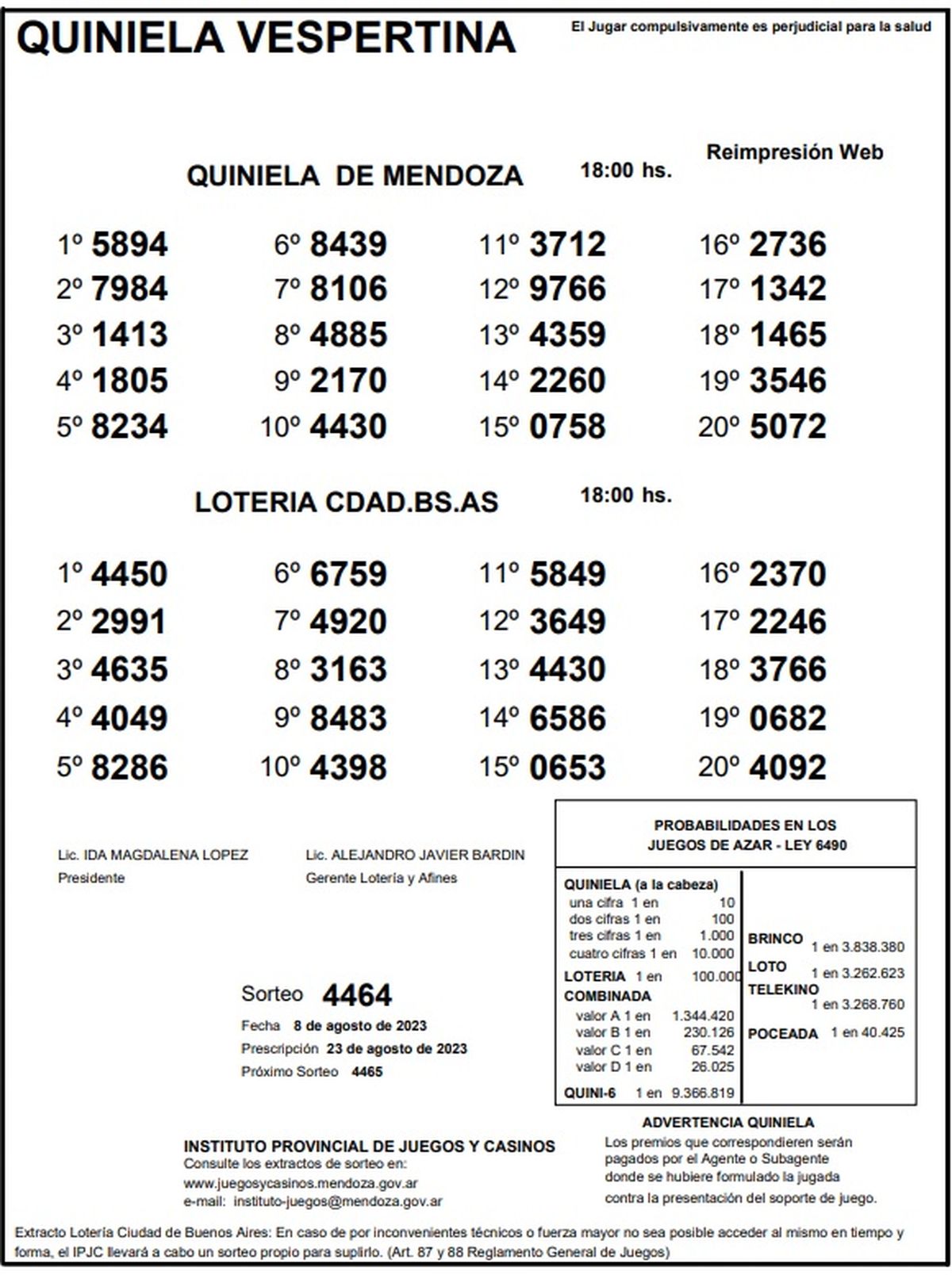 Quiniela de Mendoza: resultados de la Vespertina de hoy, 8 de agosto de 2023