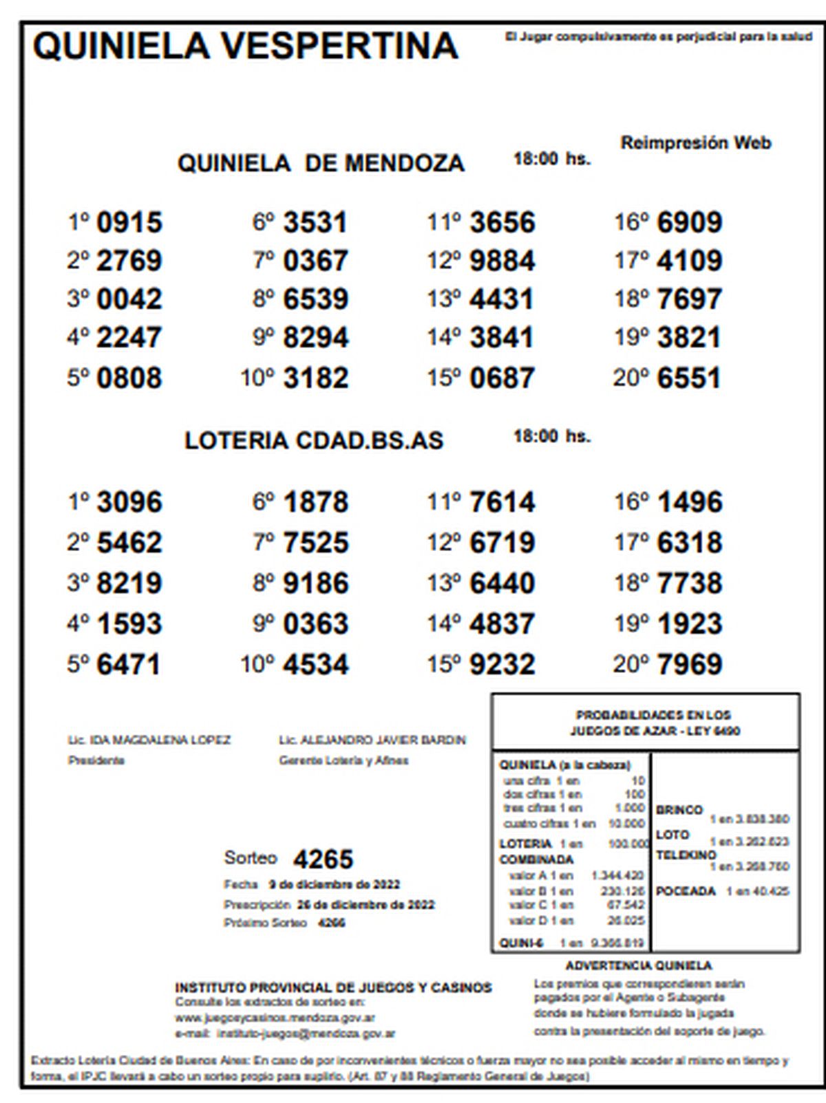 Quiniela de Mendoza: resultados de la Vespertina de hoy, 9 de diciembre de 2022
