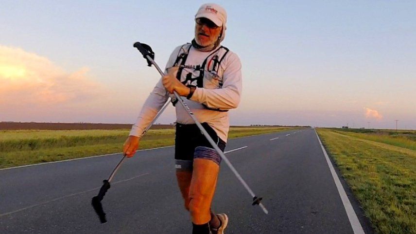 Este miércoles, cerca de las 10.30, estará arribando a la ciudad de La Paz, por la ruta nacional 7, y continuará a puro trote y caminata buscando llegar al Aconcagua y hacer cumbre, poniendo en lo más alto a esa bandera nacional que lleva en sus hombros y son su "armadura" para soportar el calor, el cansancio y las penurias de la ruta; todo en homenaje a los 44 tripulantes del submarino siniestrado hace ya dos años.