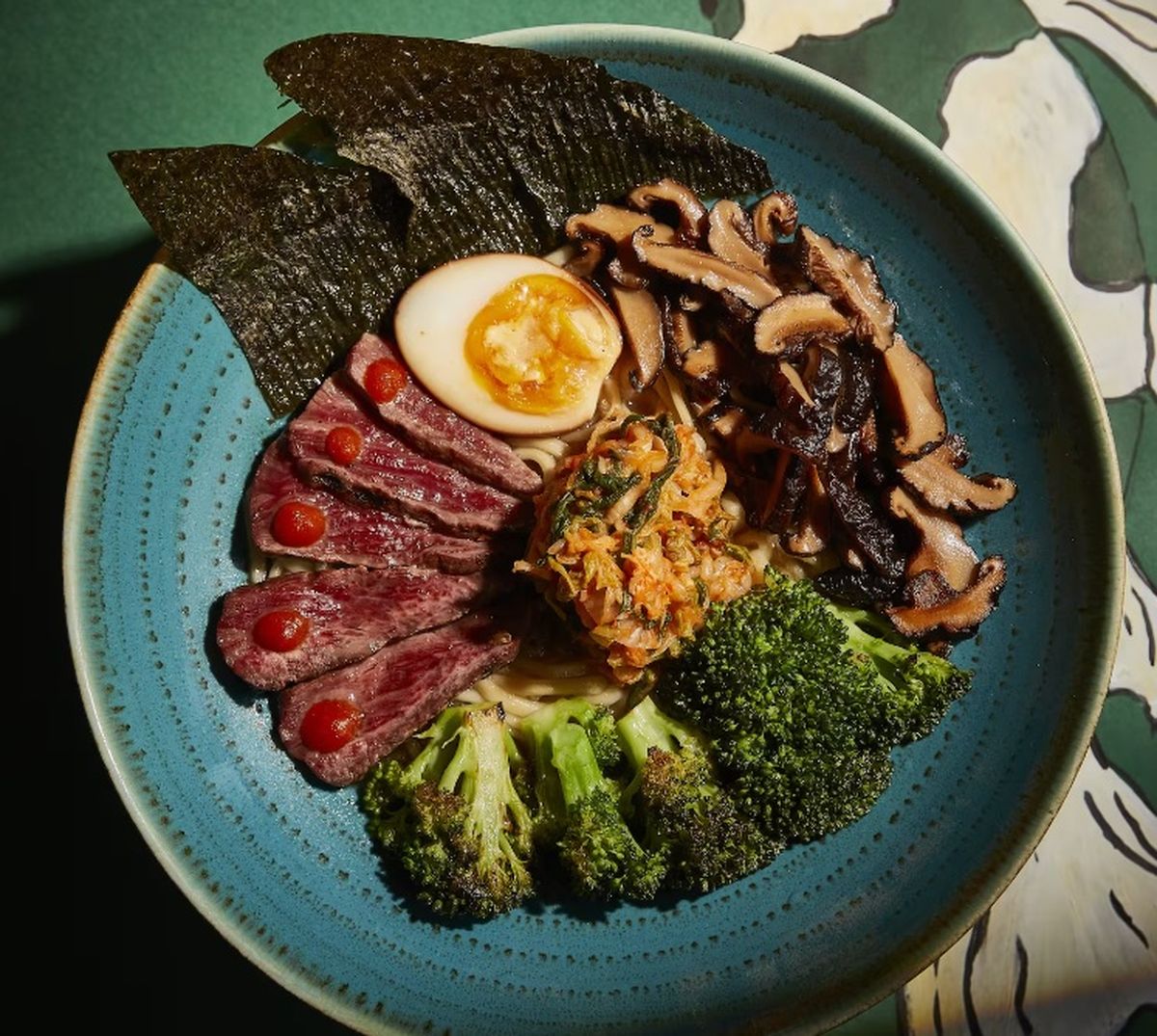 Emperador Meiji presenta su reversión de este ícono de la gastronomía oriental, su Ramen Wagyu Kimchi que combina la tradición japonesa con un toque moderno. Elaborado con fideos soba, caldo de cerdo, coles de bruselas, brócoli, huevo mollet, hongos shiitake, salsa sriracha, kimchi y como novedad la carne wagyu grillada. (Palermo: Honduras 5902 - Olivos: Corrientes 421)