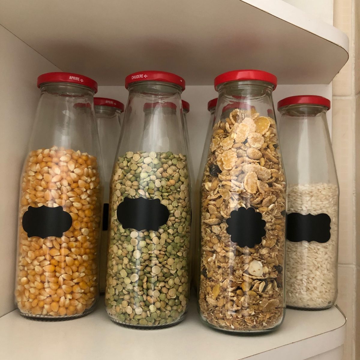 - Etiquetado: Finalmente, añade etiquetas a cada botella con el nombre del contenido. Esto no solo facilitará la identificación de los alimentos, sino que también dará un toque personalizado a tu cocina. Cierra las botellas con sus tapas y estarán listas para usar.