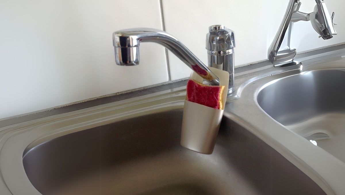 - Con un elemento punzante o un clavo caliente, hacé un pequeño agujero en esa lengüeta. Por último, colocá la ventosa de silicona en el orificio y pegá tu nuevo portaesponja en la bacha.