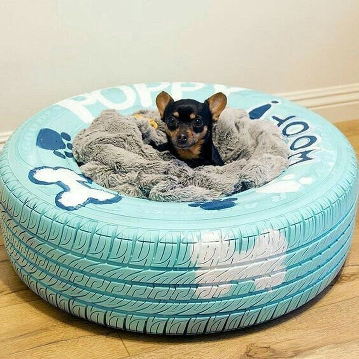 Para empezar limpia bien la cubierta que vayas a reutilizar. Luego píntala con los colores y diseños que más te gusten, deja secar bien y por último dale una o dos capas de barniz para proteger bien la cama. Para terminar agrégale en el interior una almohada o colchoncito y así te quedará una hermosa y cómoda cama para tu mascota.