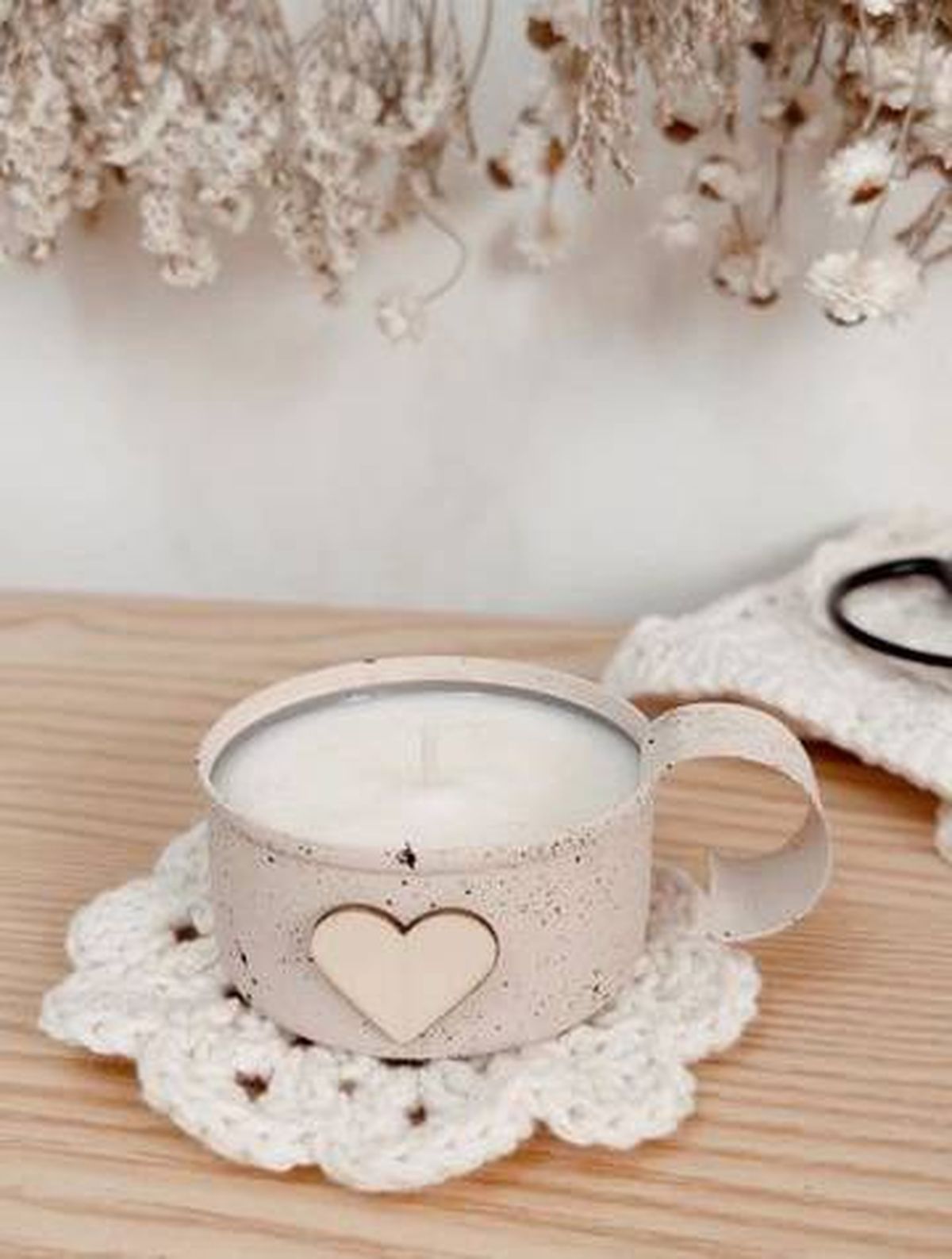Después pinta toda la lata y si quieres realízale algún diseño o agrega los accesorios que quieras. Lo importante es que dejes volar tu imaginación. Cuando esté seca agrega en su interior la vela chiquita. Quedará una vela super delicada y hermosa para decorar y regalar.