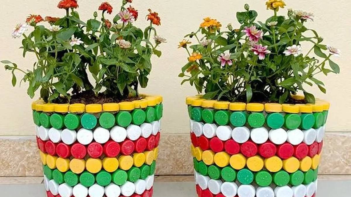 Si tienes tapas plásticas de gaseosa, no las tires y úsalas en esta idea DIY para crear una hermosa y colorida maceta para tu hogar.