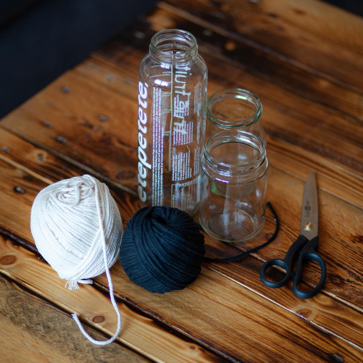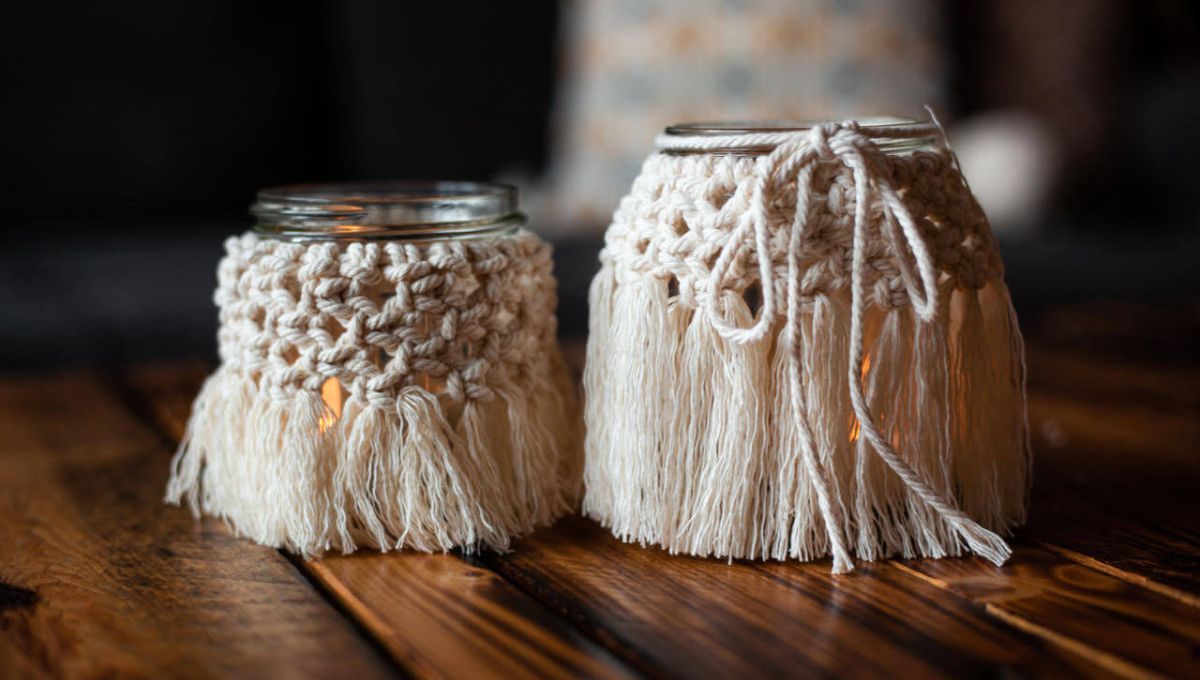 - Toque final: Cuando termines, vuelve a colocar el frasco en su posición normal. Con los sobrantes de hilo, peina los extremos para lograr un acabado rústico y DIY.