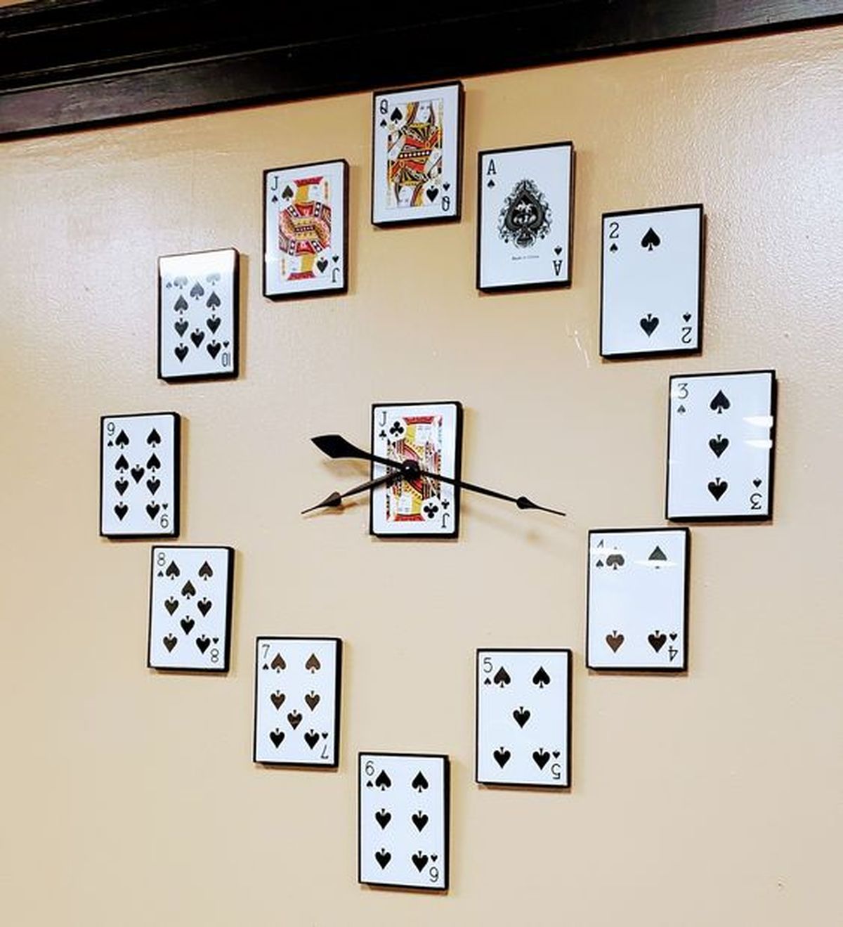 Para reciclar el mazo de cartas viejo que tienes en casa, esta idea DIY es la ideal. Con esta propuesta convertirás este juego en un hermoso reloj decorativo. Lo mejor es que también reutilizarás elementos que con seguridad ya tienes en casa.