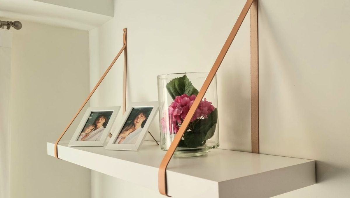 Toma los cinturones de cuero viejos y límpialos bien para eliminar cualquier suciedad o residuos. Luego, córtalos a la longitud que necesites. Estos serán el soporte para colgar las repisas, así que asegúrate de medir bien antes de cortar.
