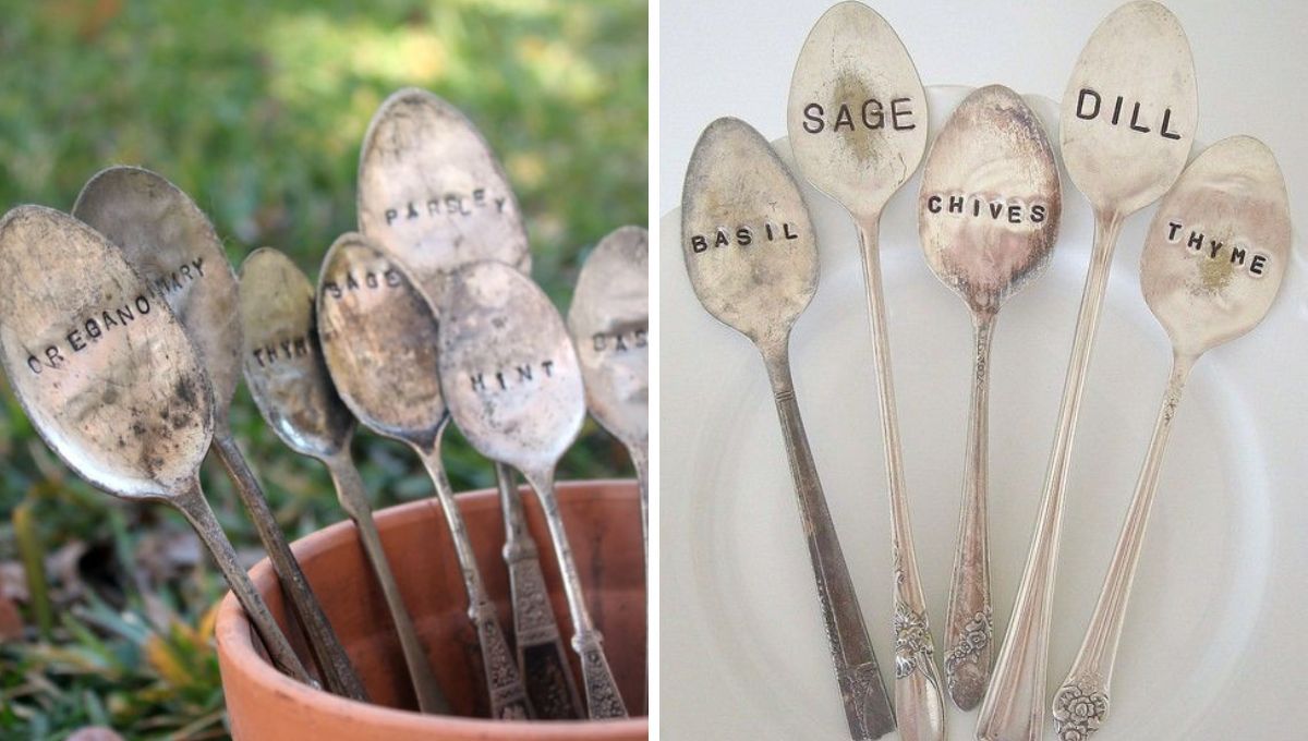 Otra idea de reciclaje que no falla nunca es utilizar las cucharas como señaladores de plantas y huerta. Esta opción puede llevar un poco más de trabajo, ya que por ejemplo al momento de escribir los nombres de las plantas necesitarás de la ayuda de un torno.