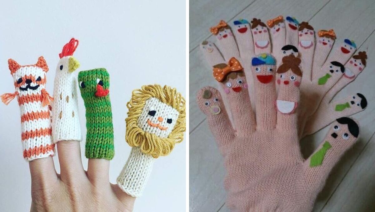 Los guantes viejos pueden convertirse también en una familia de títeres. Cada dedo puede ser un personaje diferente, y con ellos puedes dejar volar tu imaginación: ponerles pelo, anteojos, labios pintados, gorros o sombreros, etc. Esta idea es ideal para cuando lees cuentos por la noche con tus hijos. Pueden crear los títeres durante el día, y luego usarlos por la noche para ilustrar las aventuras de los personajes.